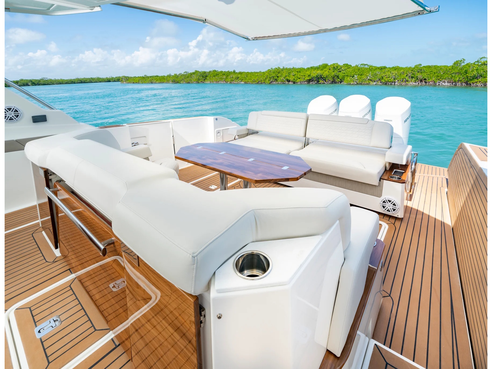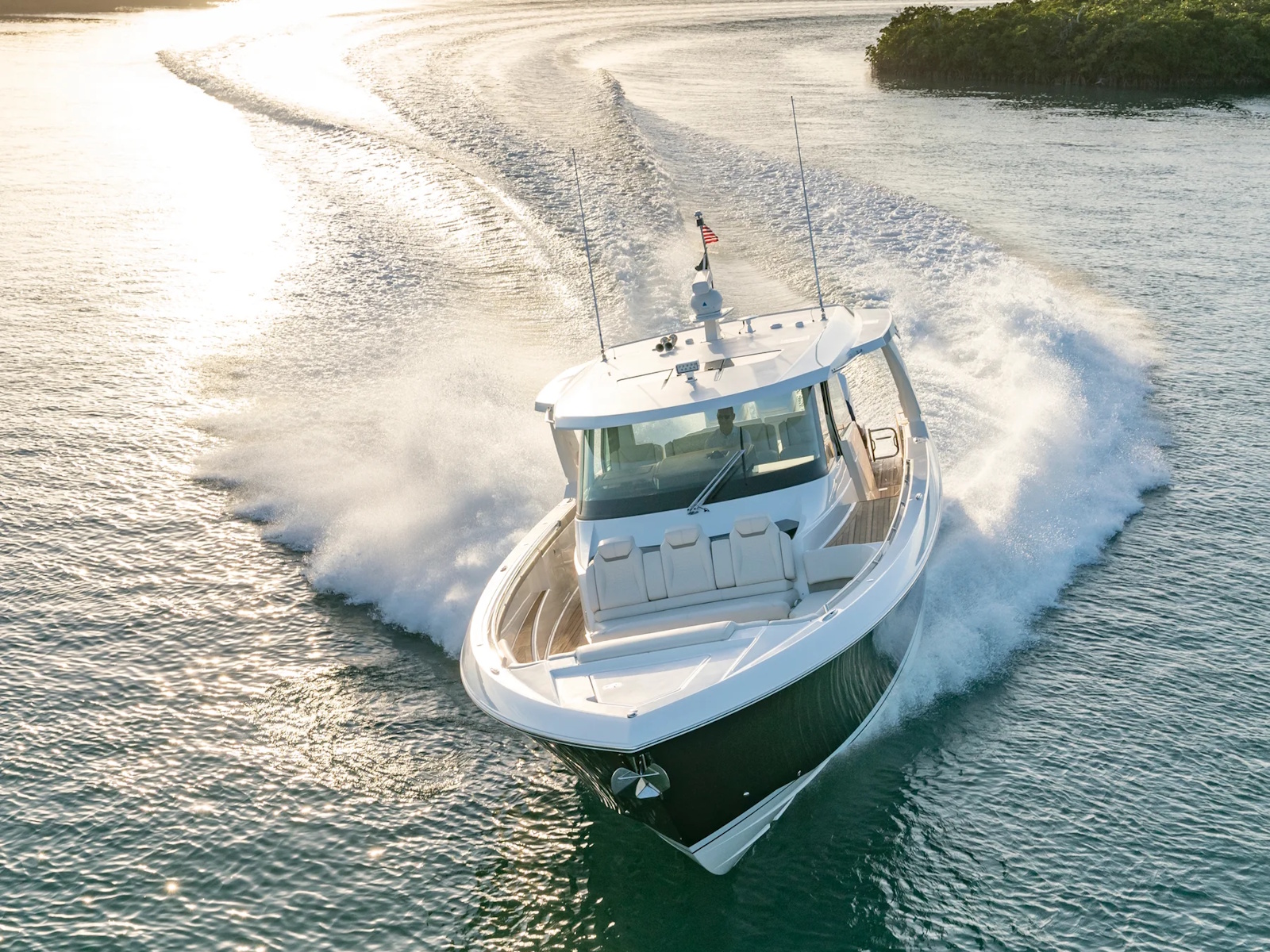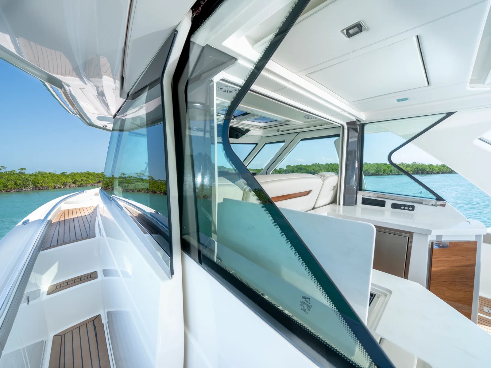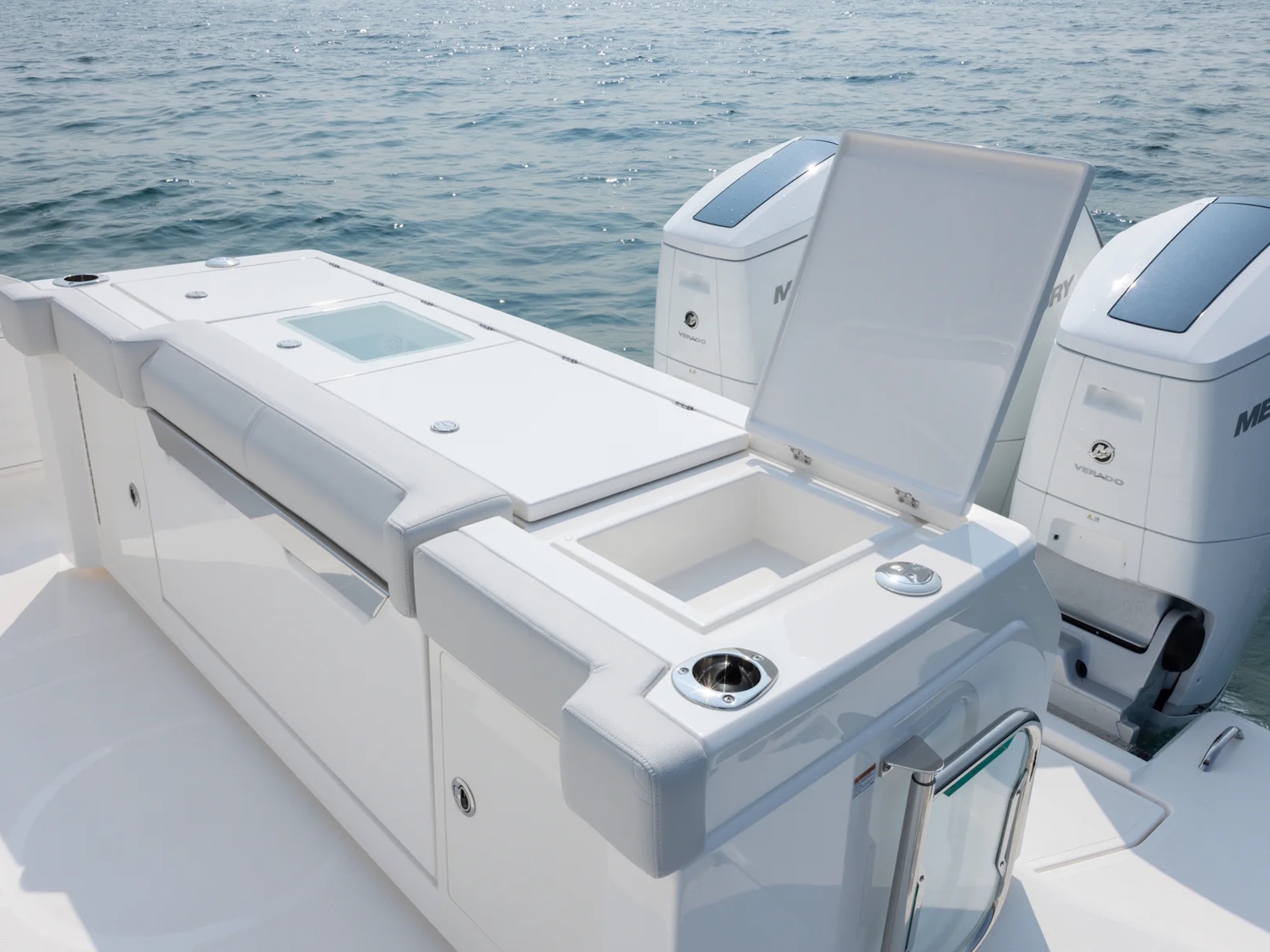 In partnership with Mercury, the 48 LS boasts the unwavering strength of the Verado® V12 600hp outboard engines. Combined with Tiara Yachts’ integrated electronics package and Garmin Marine navigation, the 600hp Verado® engines’ sophisticated, sound-dampening technology and innovative advancements in steering and control deliver the ultimate outboard-driving experience.