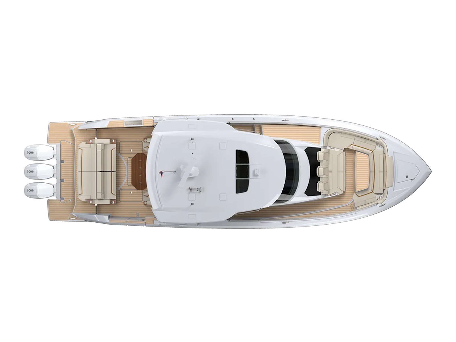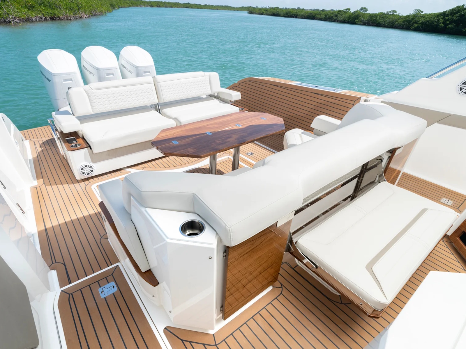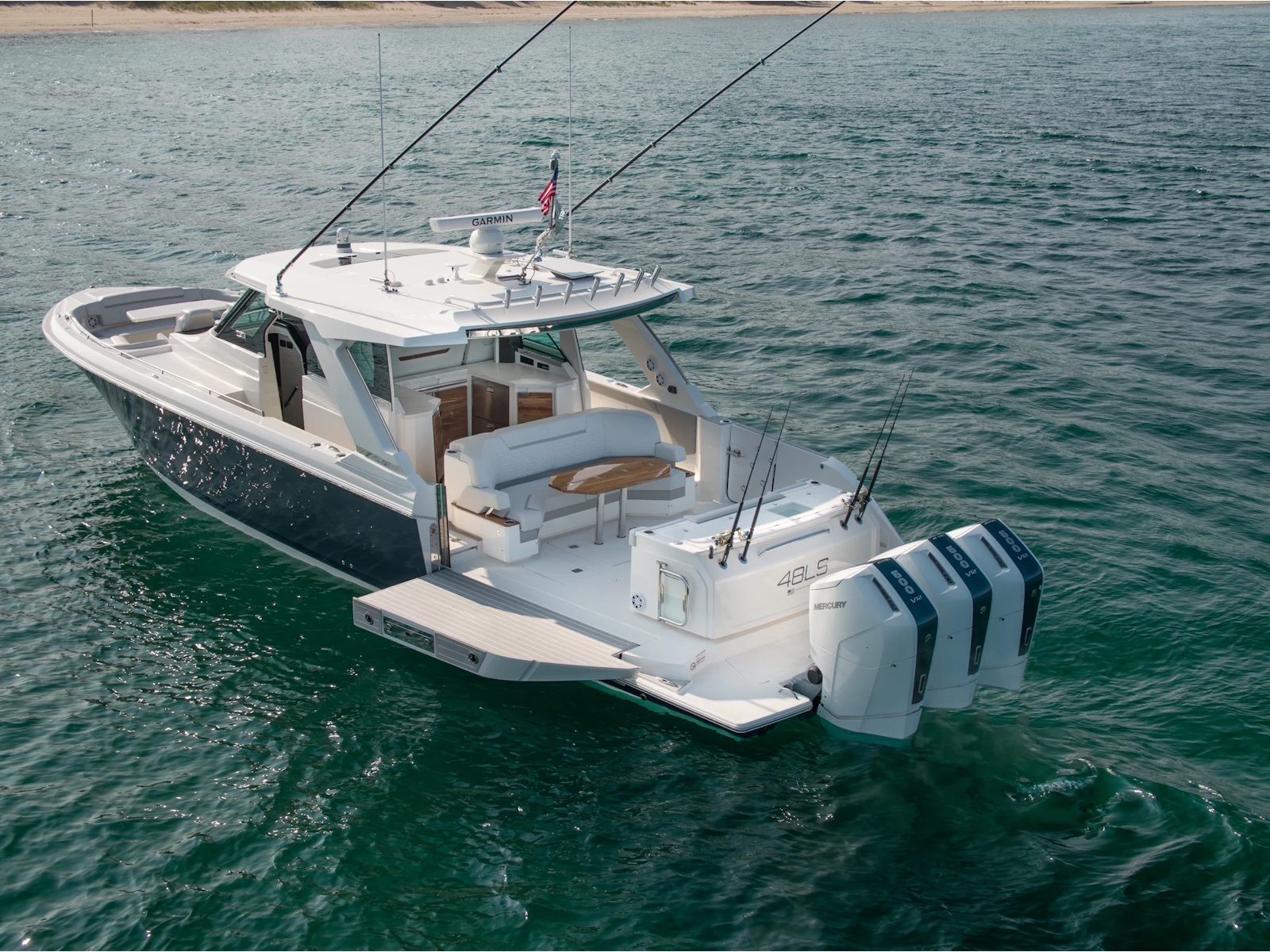 The 48 LS builds on the legacy of the Luxury Sport series through unexpected details and refined yacht aesthetics. The bow features wrap-around seating and reclining lounge while aft, the cockpit can be customized to your boating preferences with either our Lounge or Adventure Module.