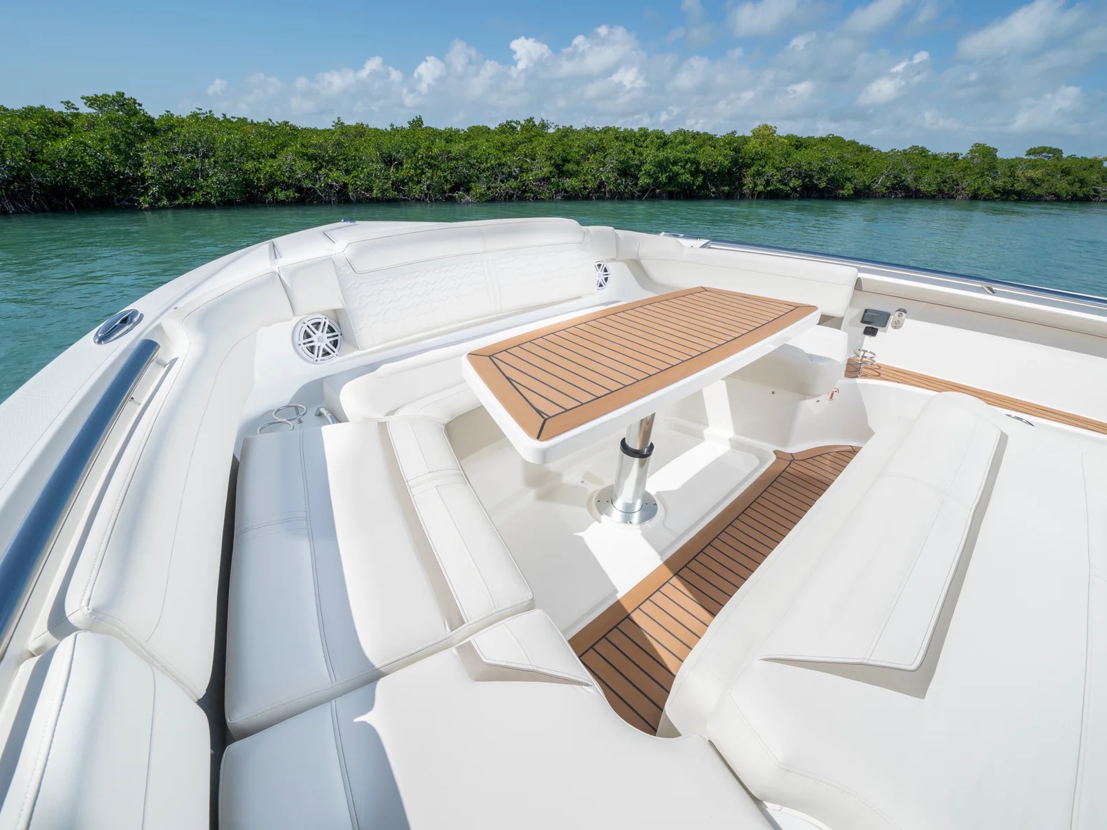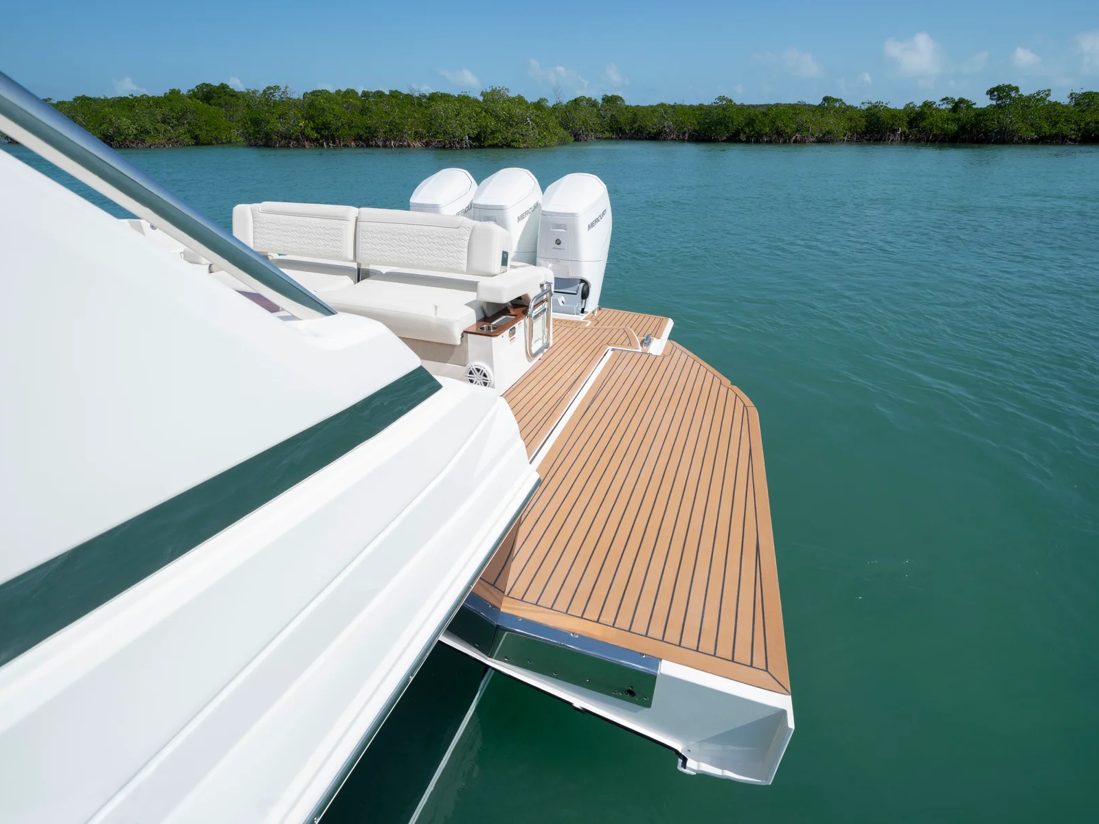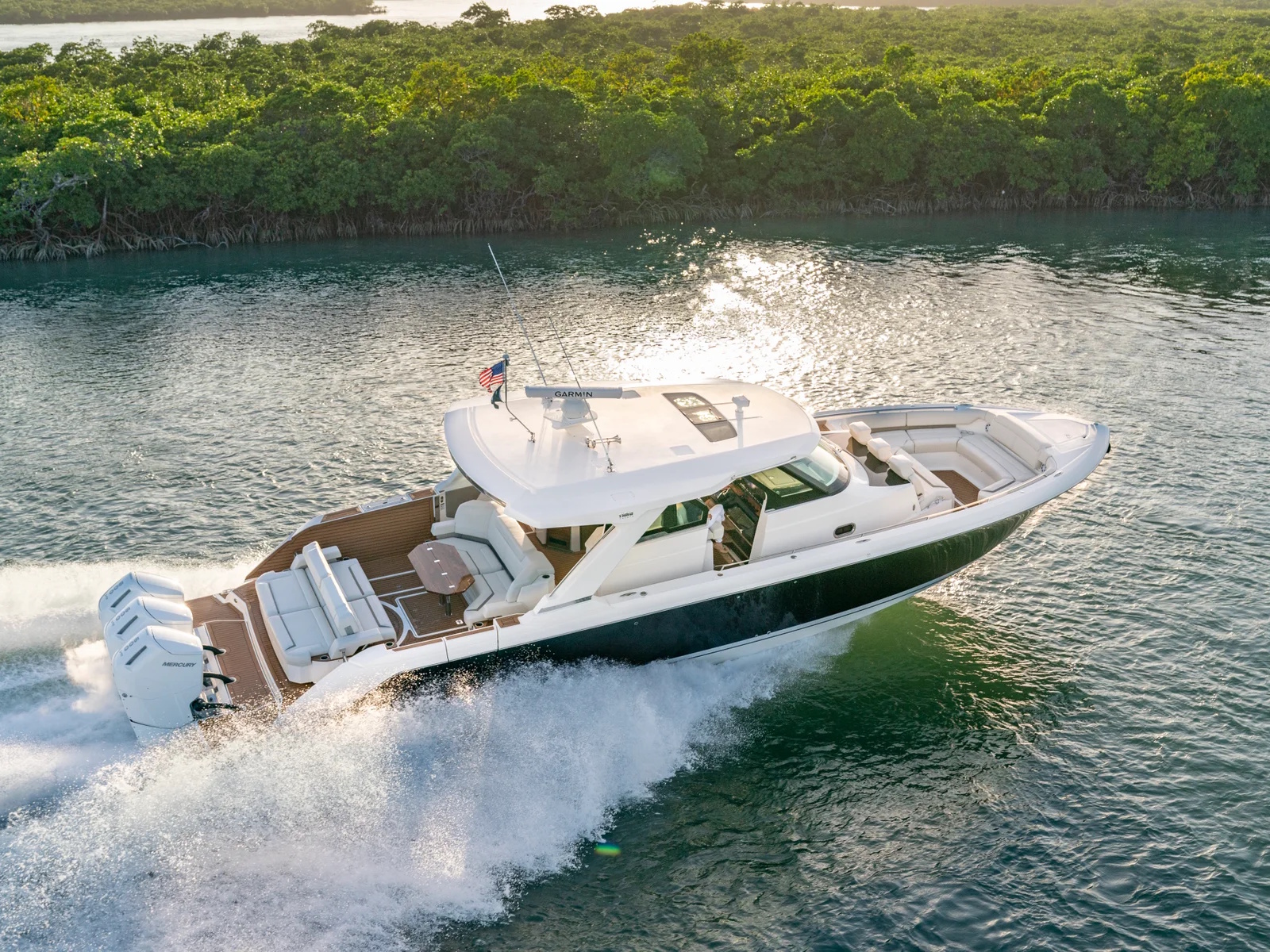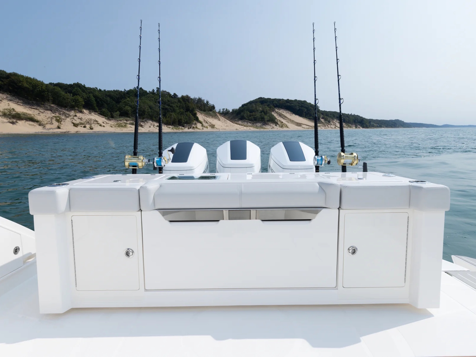 The 48 LS builds on the legacy of the Luxury Sport series through unexpected details and refined yacht aesthetics. The bow features wrap-around seating and reclining lounge while aft, the cockpit can be customized to your boating preferences with either our Lounge or Adventure Module.