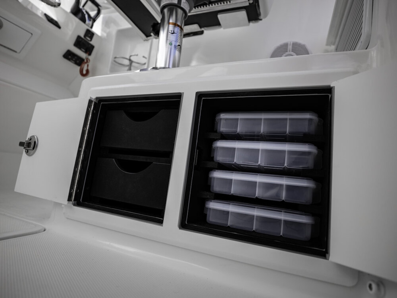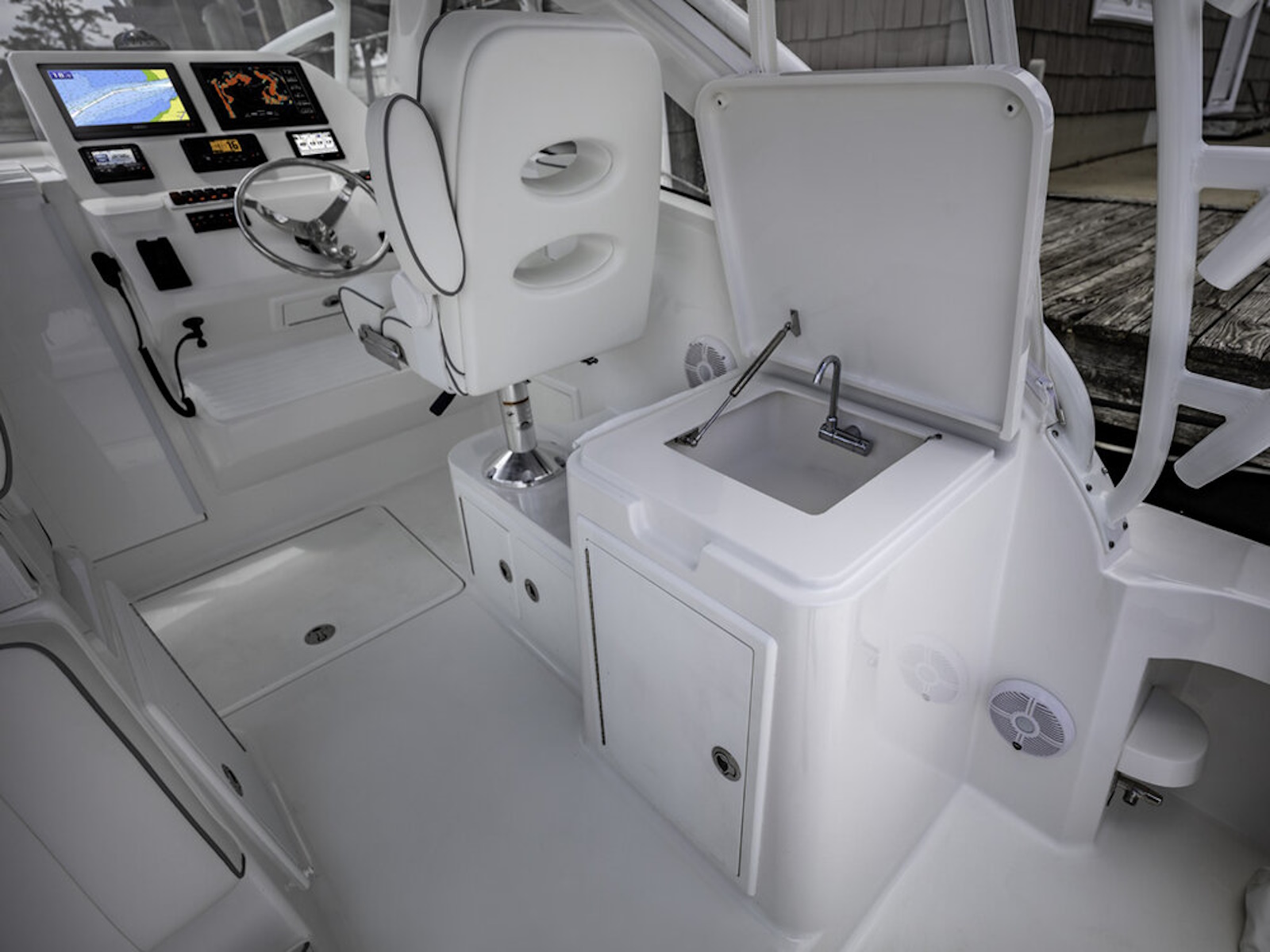 - Twin In-Deck Fishboxes with Macerator Pump-out Systems