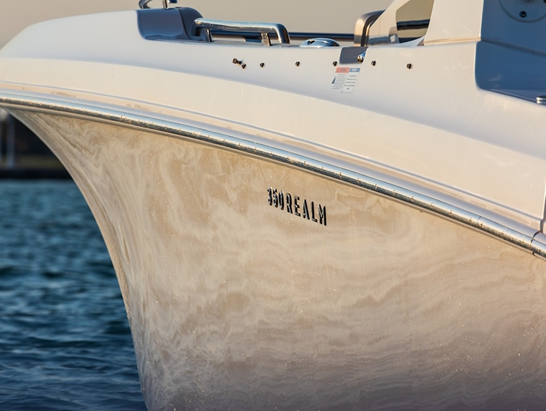 From cruising dockside restaurants to overnighting in the islands to pursuing pelagic big game, the 350 Realm is a sleek and stunning express cabin cruiser that brings all the comfort, performance, and angling features you expect from the legendary Whaler name. A sophisticated layout provides a refined experience inside the luxurious cabin, a commanding helm experience thanks to the intuitive Simrad® interface, and a deck design that seamlessly combines angling prowess and an inviting entertainment experience. With peerless and performance amenities, this 35-ft. express cruiser boat lets you feel at home on the water in a craft suited for any offshore adventure.