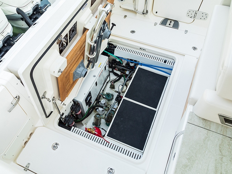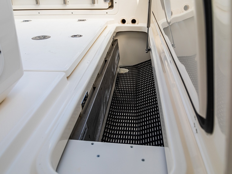 - Insulated 26qt cooler tub in starboard helm deck counter