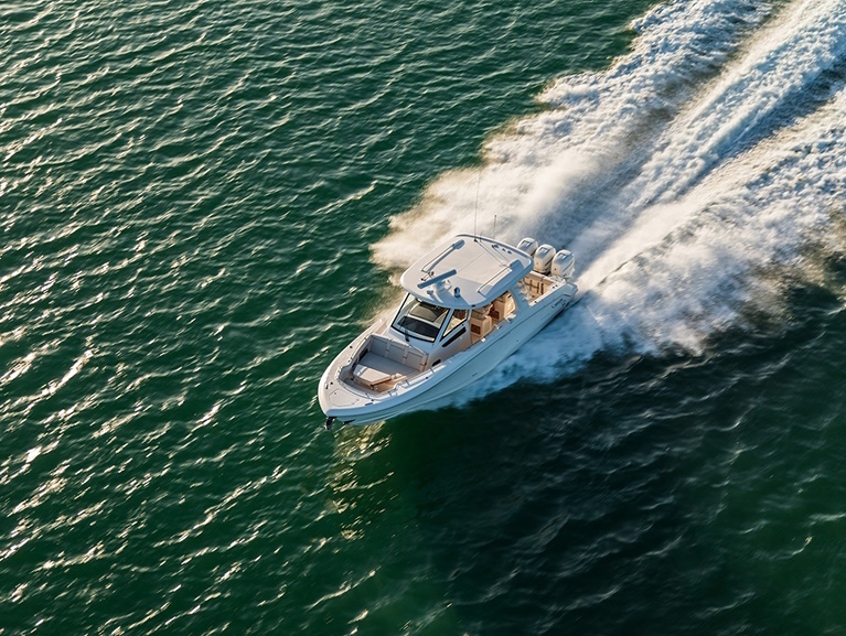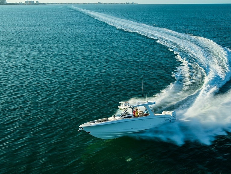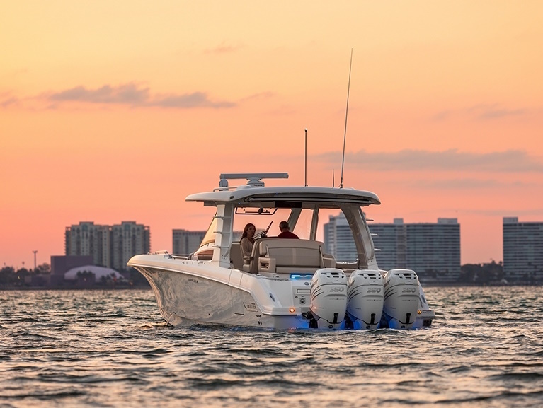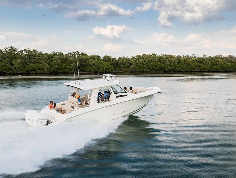 - Standard 300-HP V8 Mercury Verado and an optional 400-HP V10 Mercury Verado engine