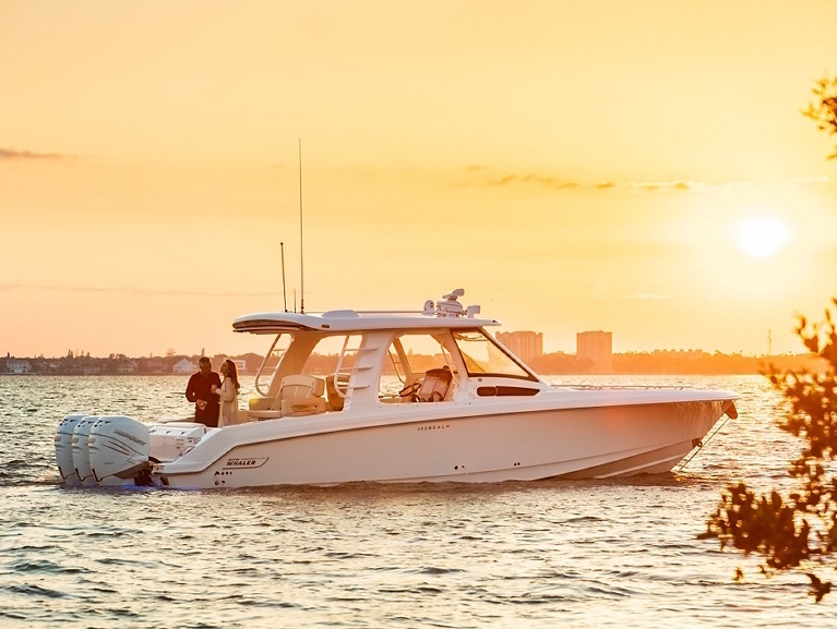 - Available with WHALER WATCH featuring Mercury's Theft Deterrent System (TDS), a telematics tracking system with GeoFence Immobilization, and remote boat monitoring