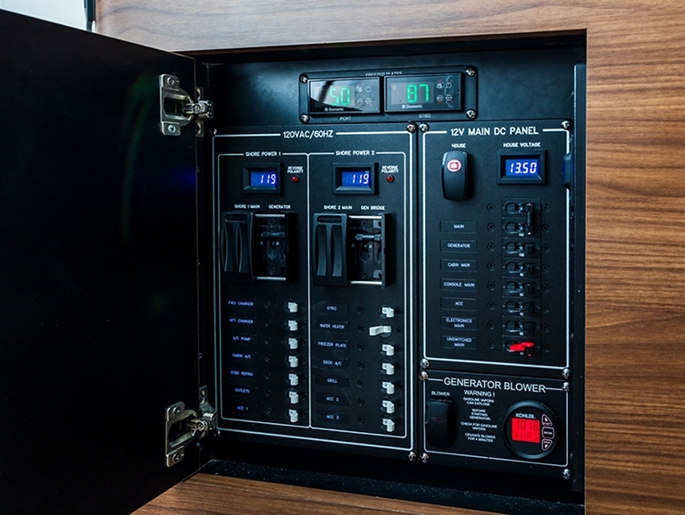 - Shore power inlets (dual 30 amp, isolation transformers and 50ft shore power cords included)