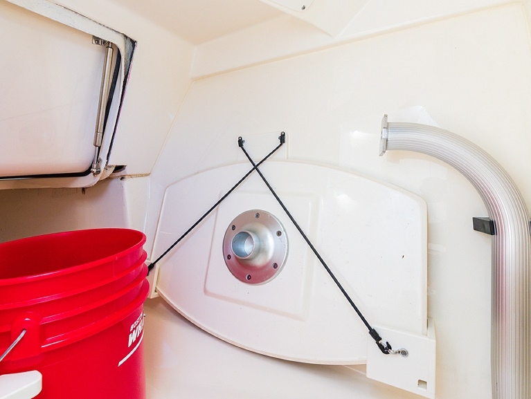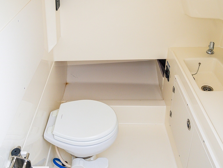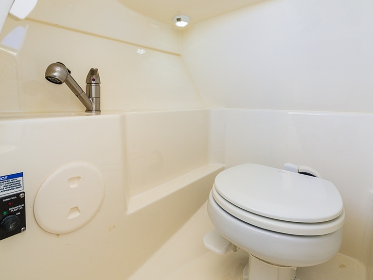 - VacuFlush™ toilet, holding tank with tank vent filter, dockside pump-out, overboard discharge and tank level indicator integrated into digital network