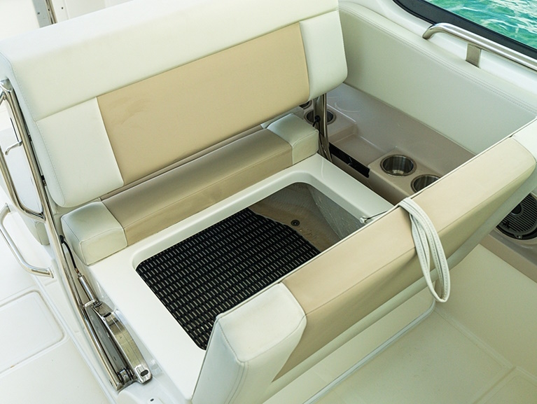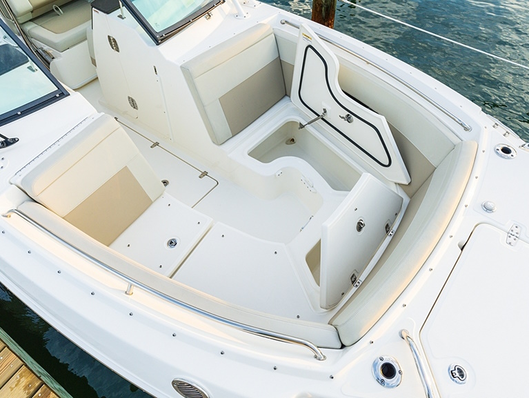 - Storage under bow seat with LED lighting (3 compartments with remote latch release)