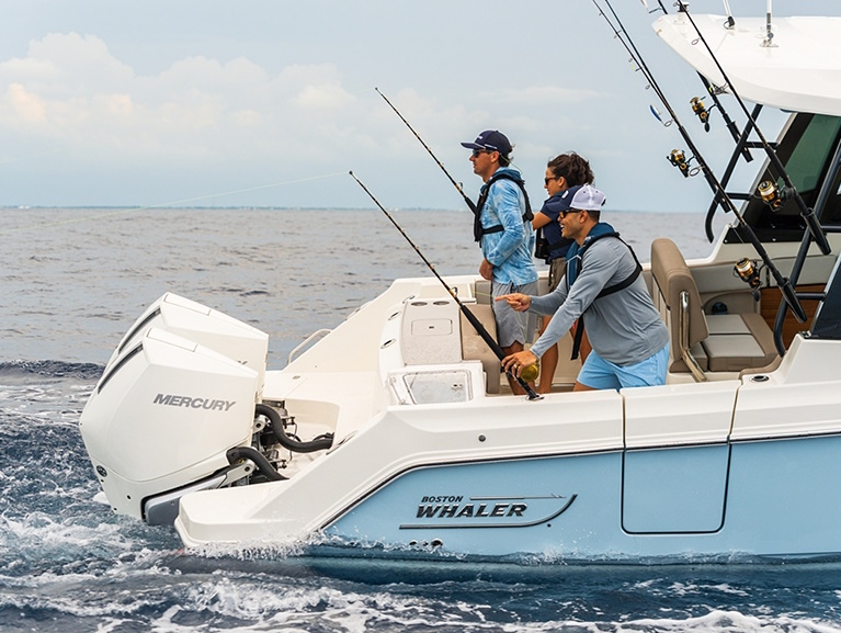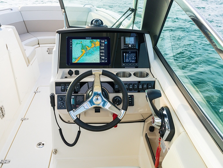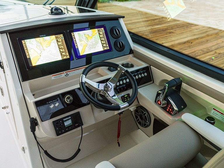 - Mercury® DTS dual binnacle controls featuring Shadow Mode for center engine with integrated engine trim controls
