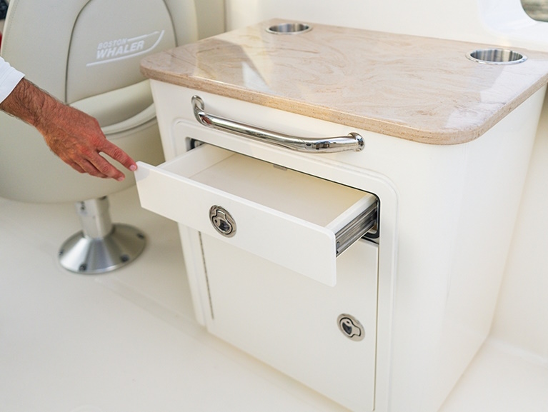 - Second row seating port side pocket and starboard pull-out grilling accessory storage