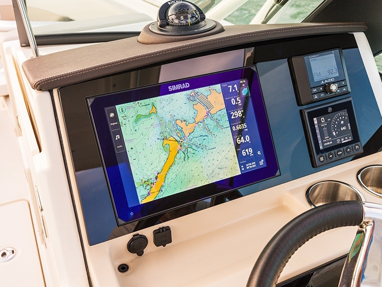 - All Simrad electronics, including new integrations such as: JL Head Units, Stainless Steel Switches, RGB Courtesy Lighting, Auto Dimming, Red/White/Blue Map Light