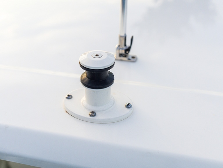 - 10” stainless steel cleats - stern cockpit with gunnel board hawse pipe (2), anchor locker (1)