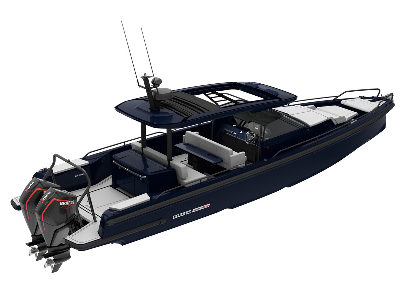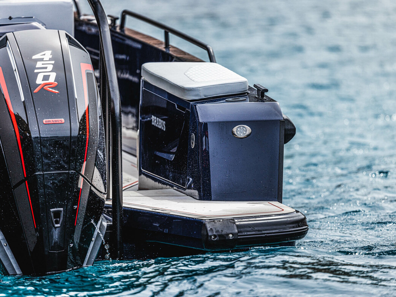 The BRABUS Shadow 900 Deep Blue Signature Edition’s namesake 900hp is produced courtesy of dual Mercury Marine 450R 4.6-litre V8 Four Stroke racing engines. While the BRABUS Shadow Deep Blue is capable of reaching over 60+ knots with ease, it is at the same time also one of the best choices for handling and drivability. A dashboard with fingertip controls and touchscreen technology improves handling, while the boat’s Intelligent Steering Module with bow-thruster ensures optimal manoeuvrability.