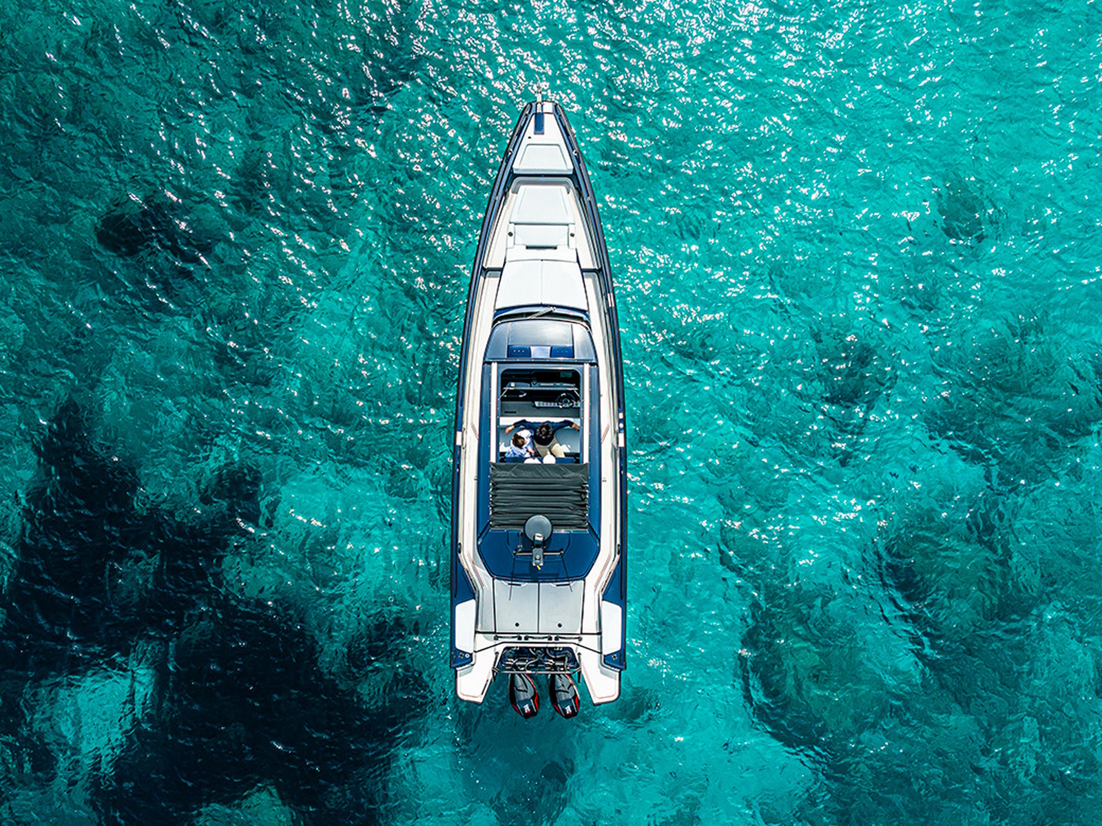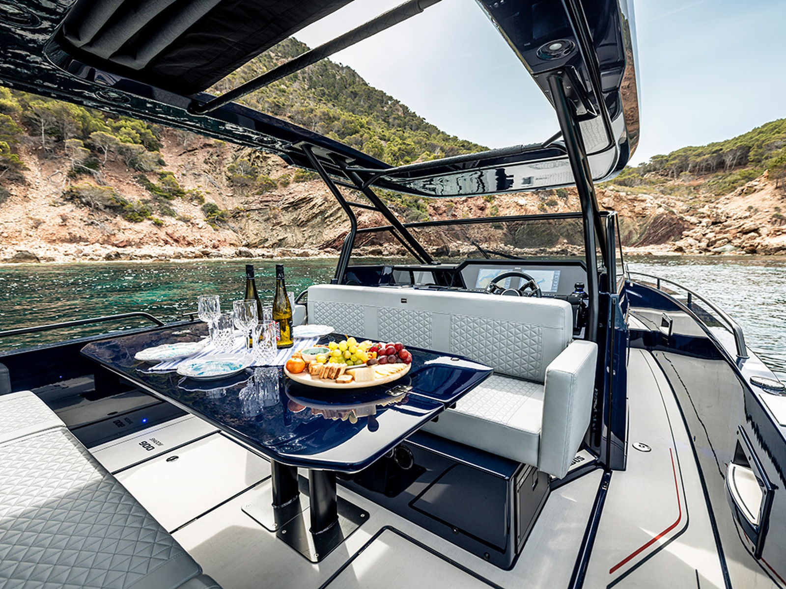 For even more comfort as well as socialising space on board, the Shadow 900 Deep Blue Spyder and Sun-Top models can be opted with a new and improved lounge area package, which provides limitless opportunities for relaxing, sunbathing or spending quality time with family, friends or guests. Included in the lounge option are sofa-style seats at the helm, with side armrests for added comfort. The backrest can be used for a forward-facing driving position or flipped around for those who want to use the sofa seat in the aft-facing position. The foredeck sunbed is significantly enlarged, and the cockpit table boasts an infill cushion that can transform it into yet another sunbed for an elevated comfort level. The Deep Blue Signature Edition is at the same time also one of the best choices for handling and drivability. A dashboard with fingertip controls and touchscreen technology improves handling, while the boat’s Intelligent Steering Module with bow-thruster ensures optimal manoeuvrability.