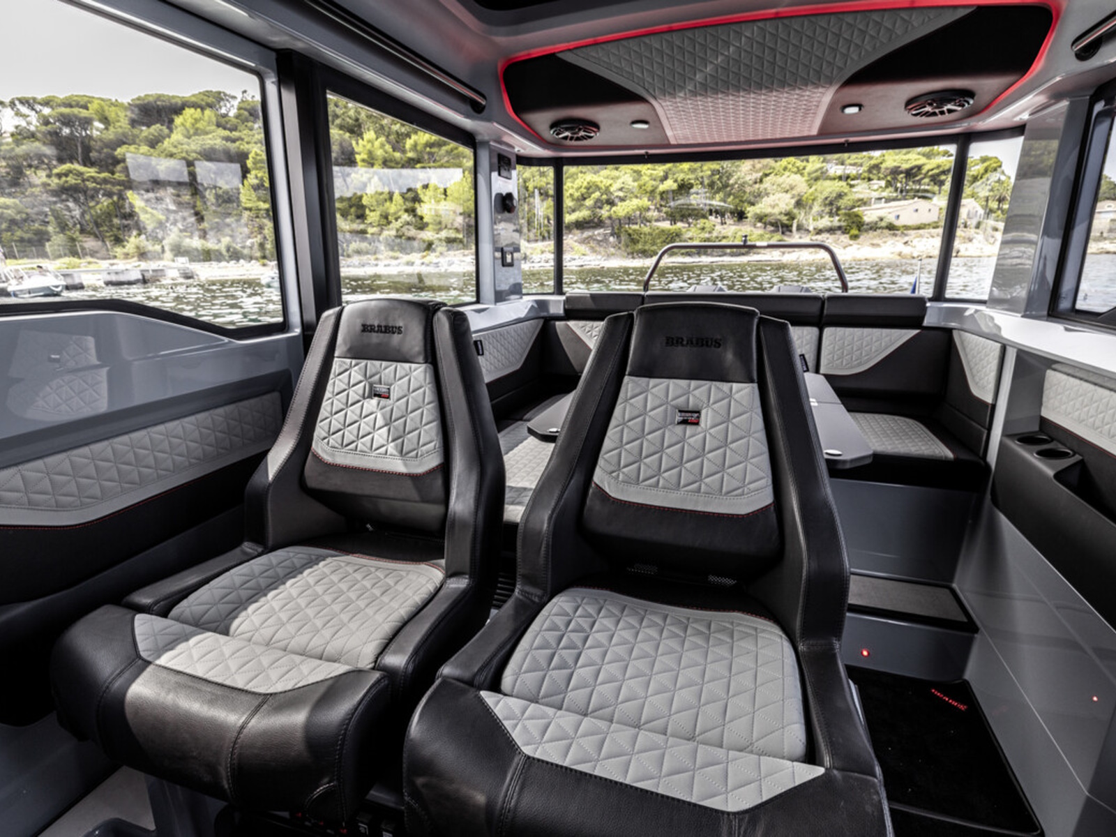 An ultra-luxurious cabin cruiser – Endowed with true ‘go-anywhere’ characteristics, while at the same time offering an extremely convivial environment, with comfortable, raised seating for seven people in the cockpit that effortlessly cossets occupants in the sophisticated luxury and bespoke detailing renowned of a BRABUS superboat. The large sliding electrical opening sun-roof and two large sliding doors open up the cabin to the elements of the day, providing the perfect ambience and lounge area to entertain guests and spent time with your loved ones.