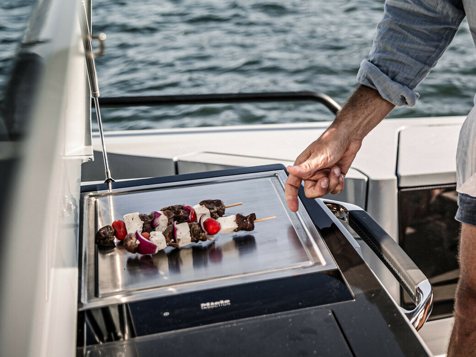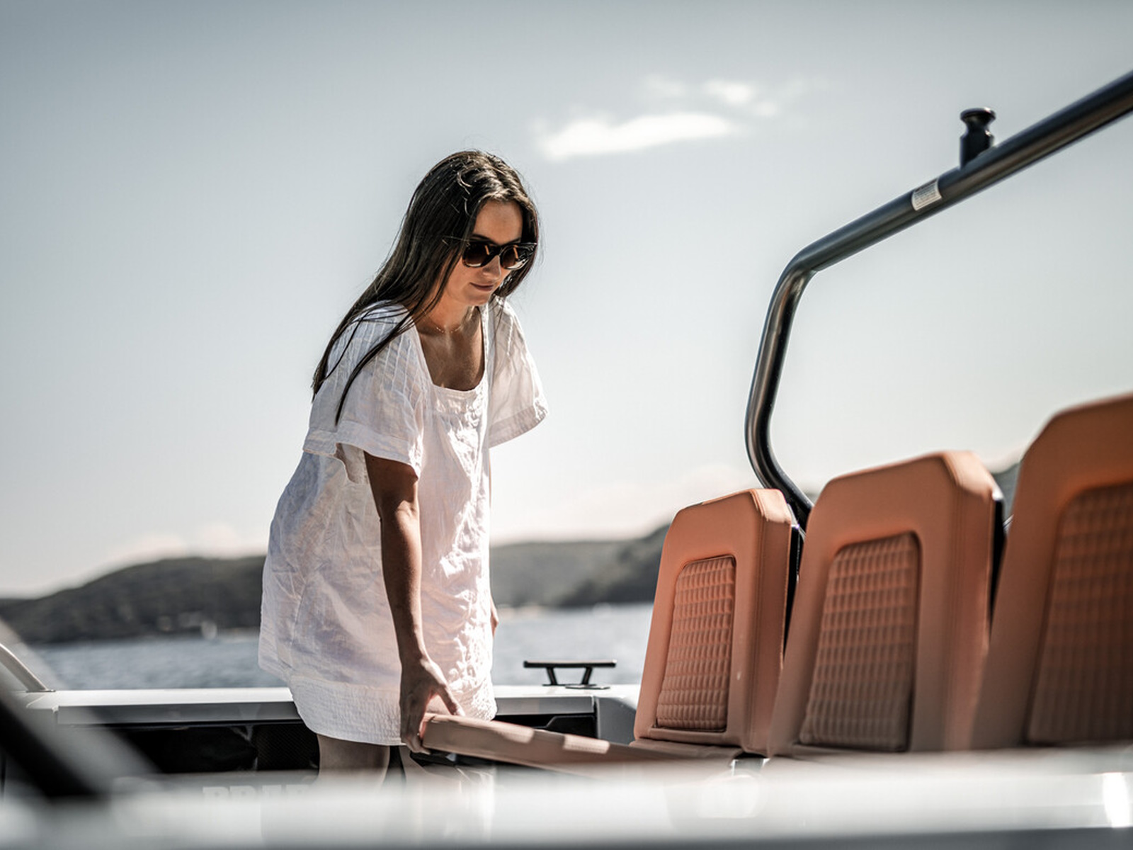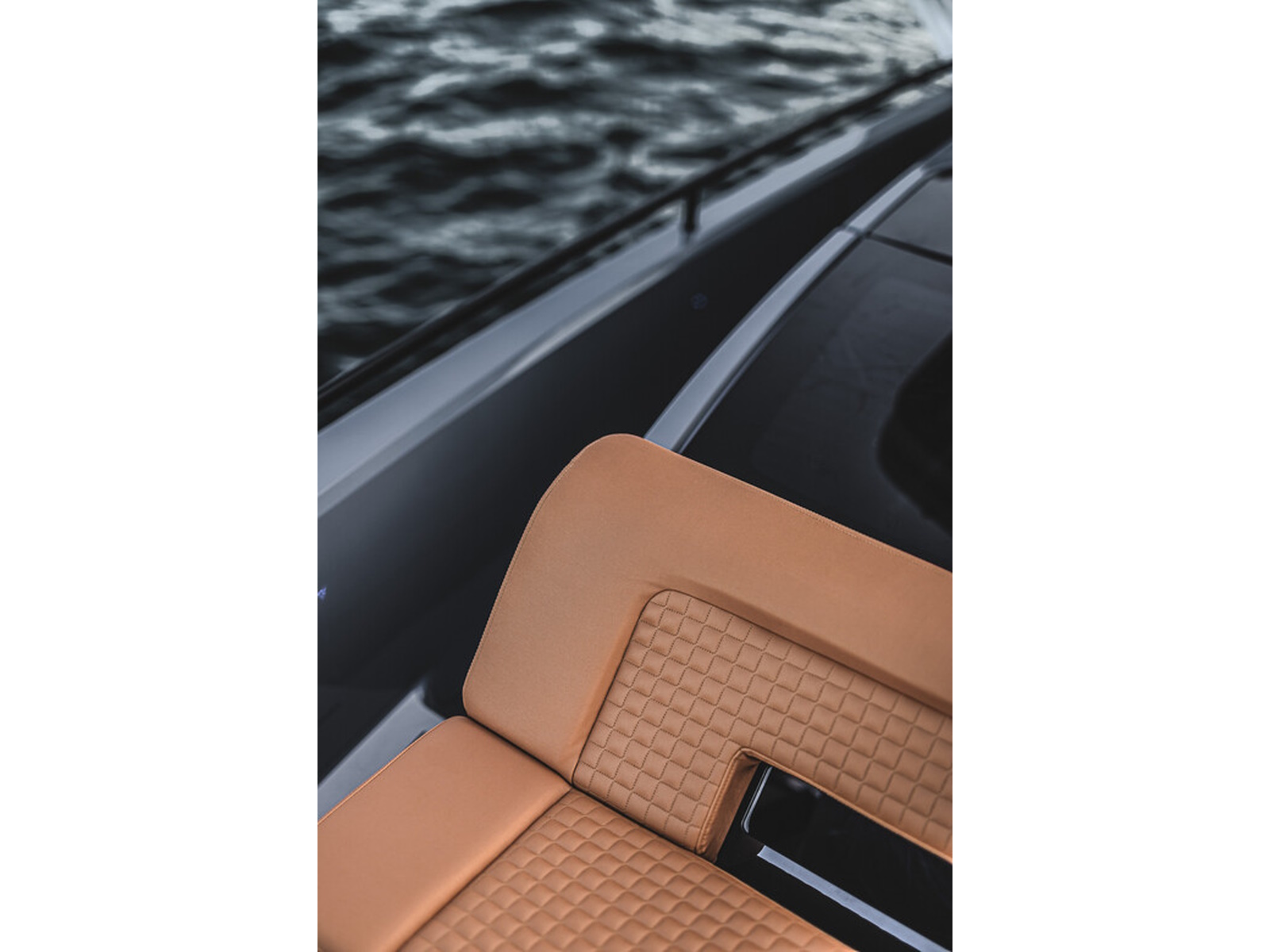 Smart-safety and electronics - The BRABUS Shadow 900 features a wide and expansive Simrad® full width, touch-screen ‘Glass Helm Information Display' with a customizable, state-of-the-art BRABUS User-Interface, offering a selection of driver-orientated sport modes, access to the boat’s main navigation, engine management, on board entertainment and driving-assist features. The Intelligent Steering Module with integrated trim tab, bow thruster and audio controls enables to control the boat even smoother than ever before. In the quest for a more driver-focused, more up to date and seamless looking appearance, the helm area is free of unnecessarily cluttered instrumentarium.