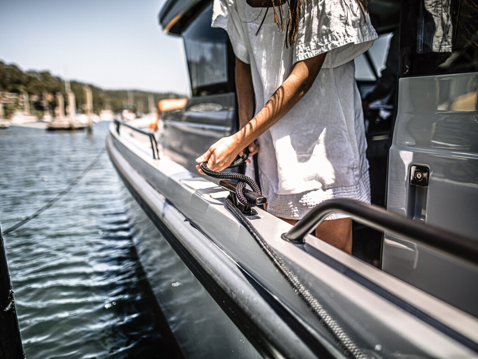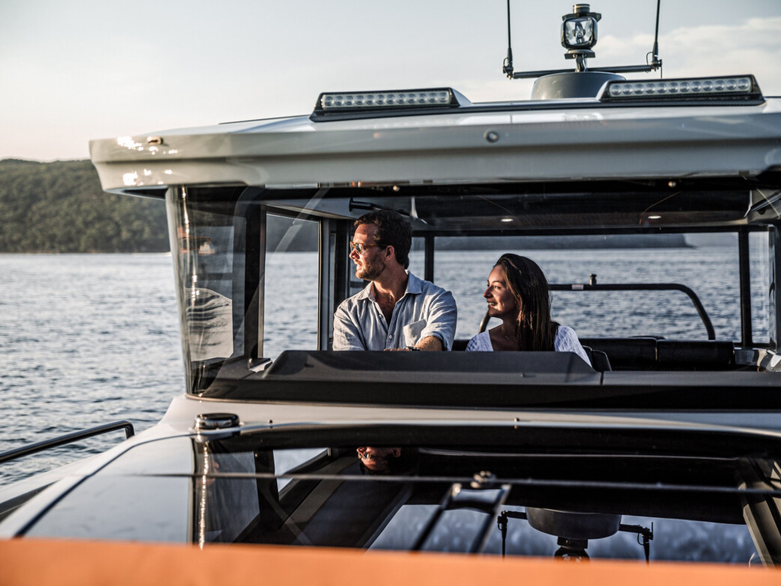 Spacious fore deck - The spacious fore deck is a perfect place to socialize with friends and family in the open air, where the seating area with the sunbed can be utilized for sunbathing and relaxing. You can also equip the fore deck with a table instead of a sunbed.