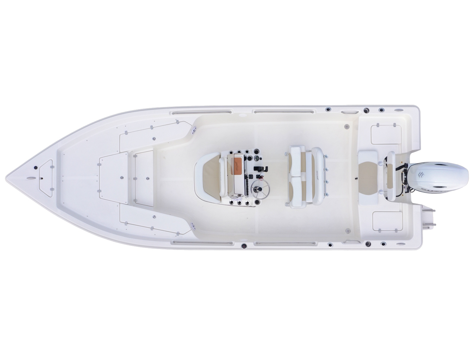The BullsBay 2400 is the latest addition to the BullsBay lineup, building on the success of the popular 2200 platform. With an expanded length of 24 feet—an increase of 2 feet 4 inches—this bay boat offers significantly more floor space between the leaning post and the rear casting deck. The added length also creates enough room forward of the console to include a convenient step-up to the forward deck, providing enhanced storage options and easier access to the bow casting deck. The redesigned console accommodates the latest large-screen electronics, seamlessly integrated into the dash. Designed to meet the needs of both anglers and families, the BullsBay 2400 excels as an all-purpose vessel. Its shallow draft of less than 15 inches makes it perfect for backwater flats fishing, while its robust construction allows for nearshore and even offshore excursions on calm days. Powered by your choice of a 200, 225, or 250 HP engine, the BullsBay 2400 is both budget-friendly to purchase and economical to operate. Versatile, capable, and designed for every adventure, the BullsBay 2400 is the ultimate "do-it-all" fishing machine.