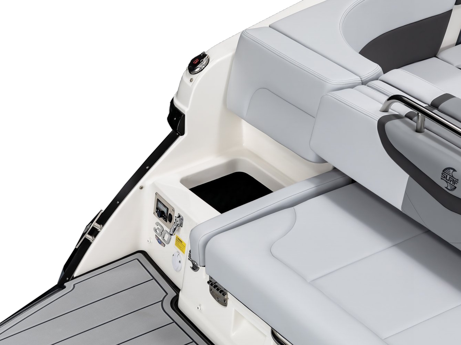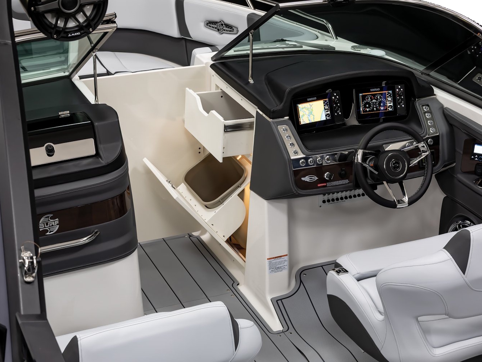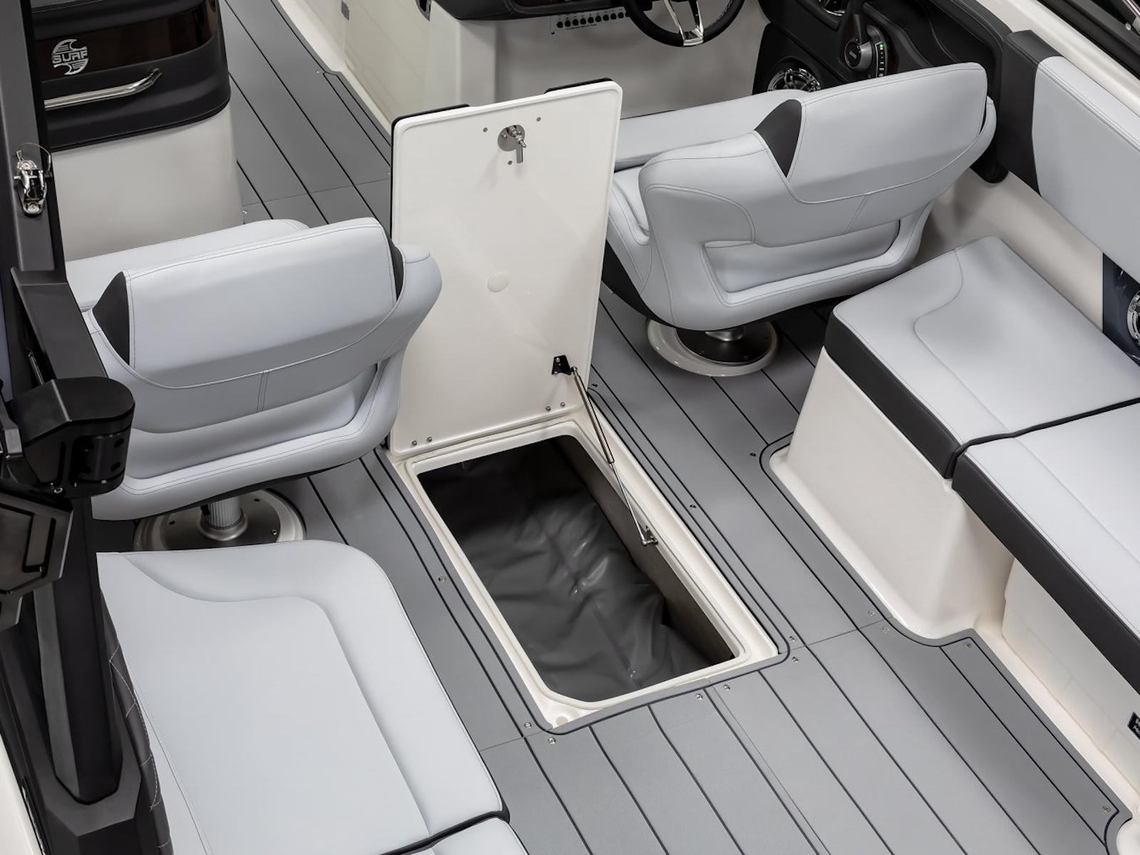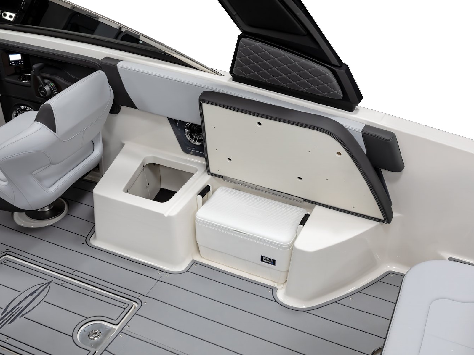 • Storage under Starboard Helm w/Protective Mat and Trash Receptacle