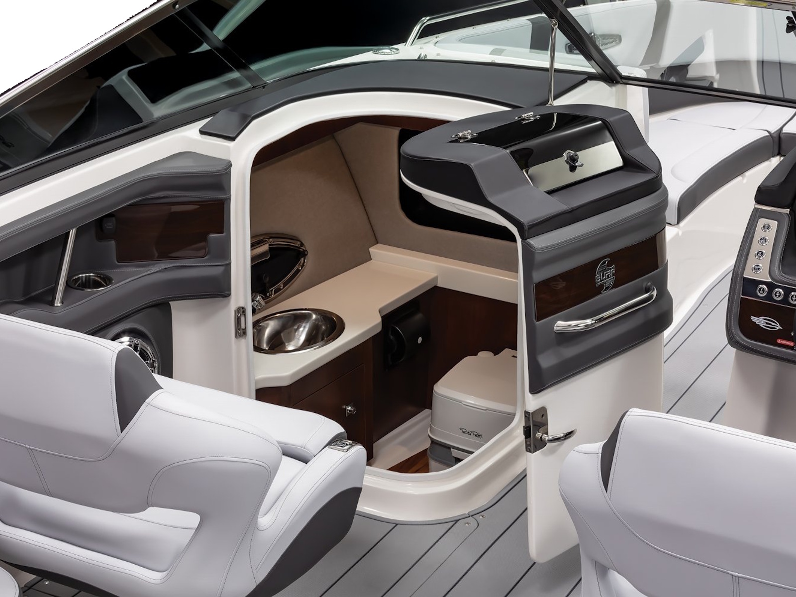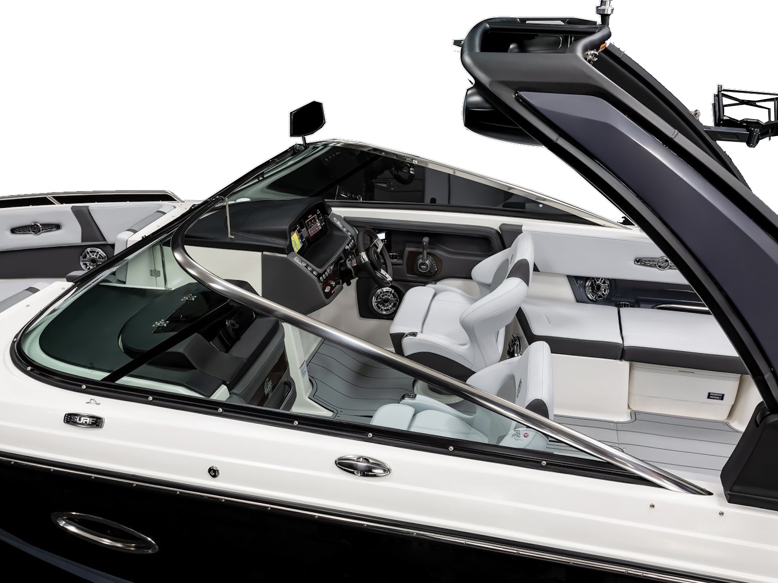 The 30 Surf edition is equipped with the patented, hydraulically operated Malibu Surf Gate™ which transforms watersport wakes into the most surfable and customizable waves possible. On a boat equipped with Malibu Surf Gate™, there's no need for passenger assistance to affect the wave.