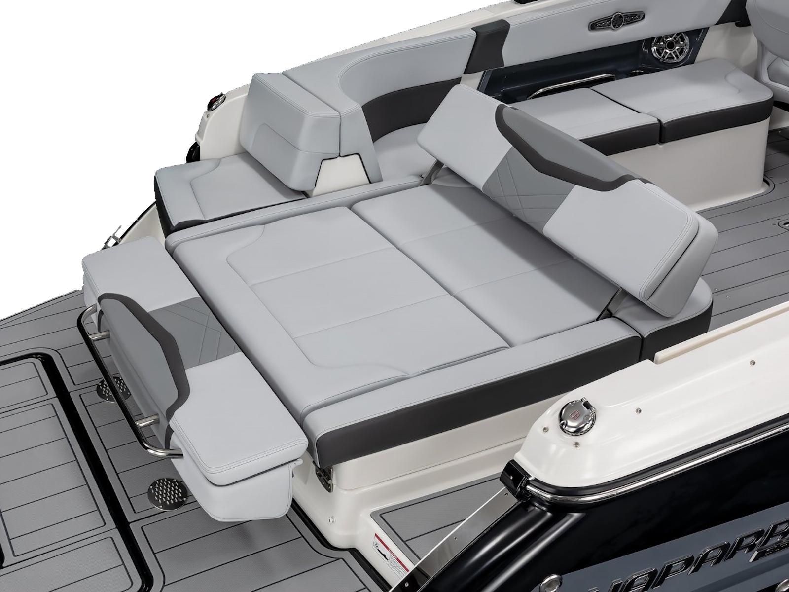 • Aft Bench Seating with Reversible Backrest System Manually Converts from Double Bench to Sun Lounge