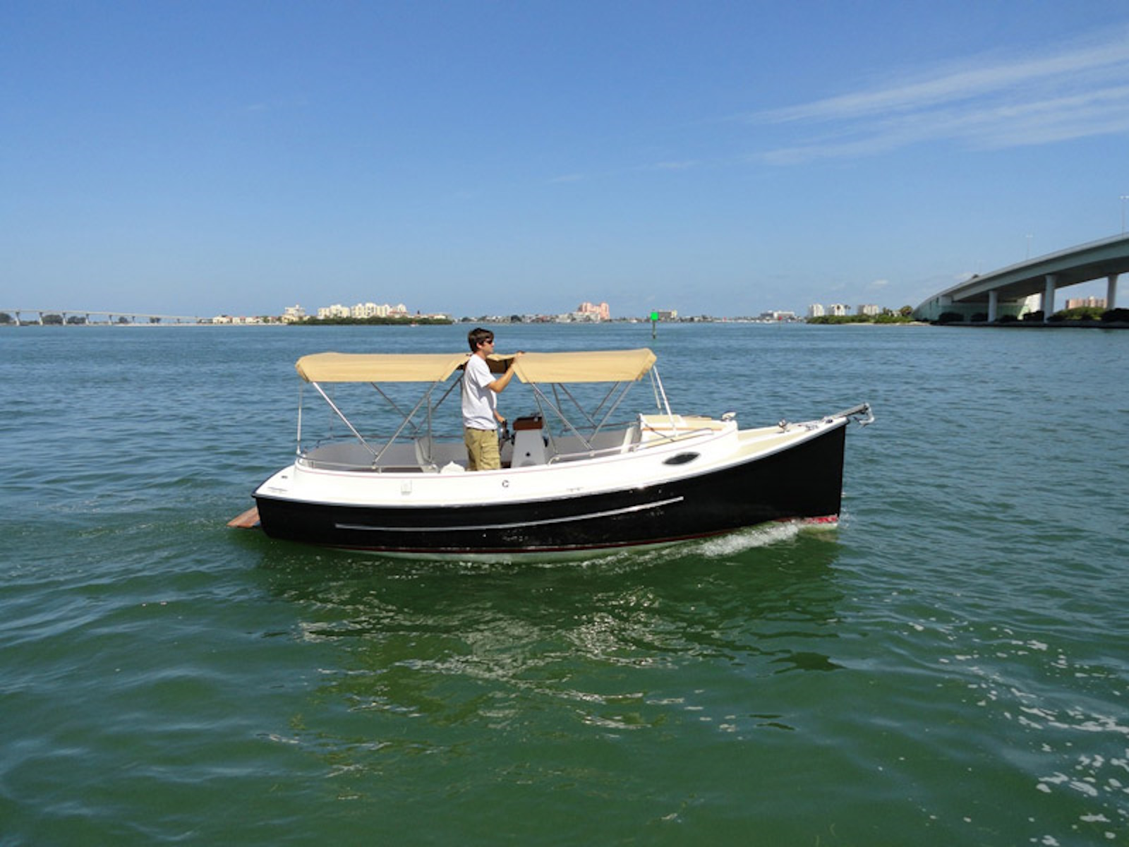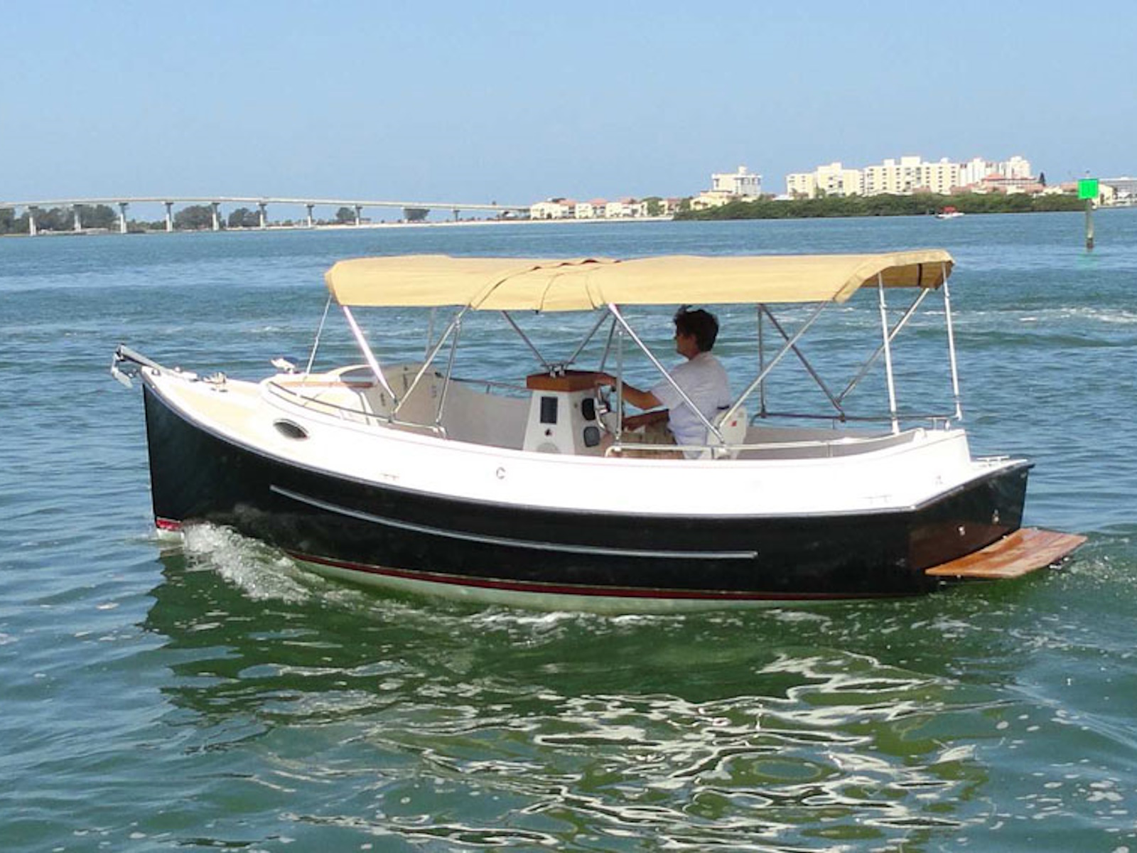 The Elco electric propulsion will move The Launch at 5.3 knots for 5-6 hours. At 4 knots the range is 10-12 hours.