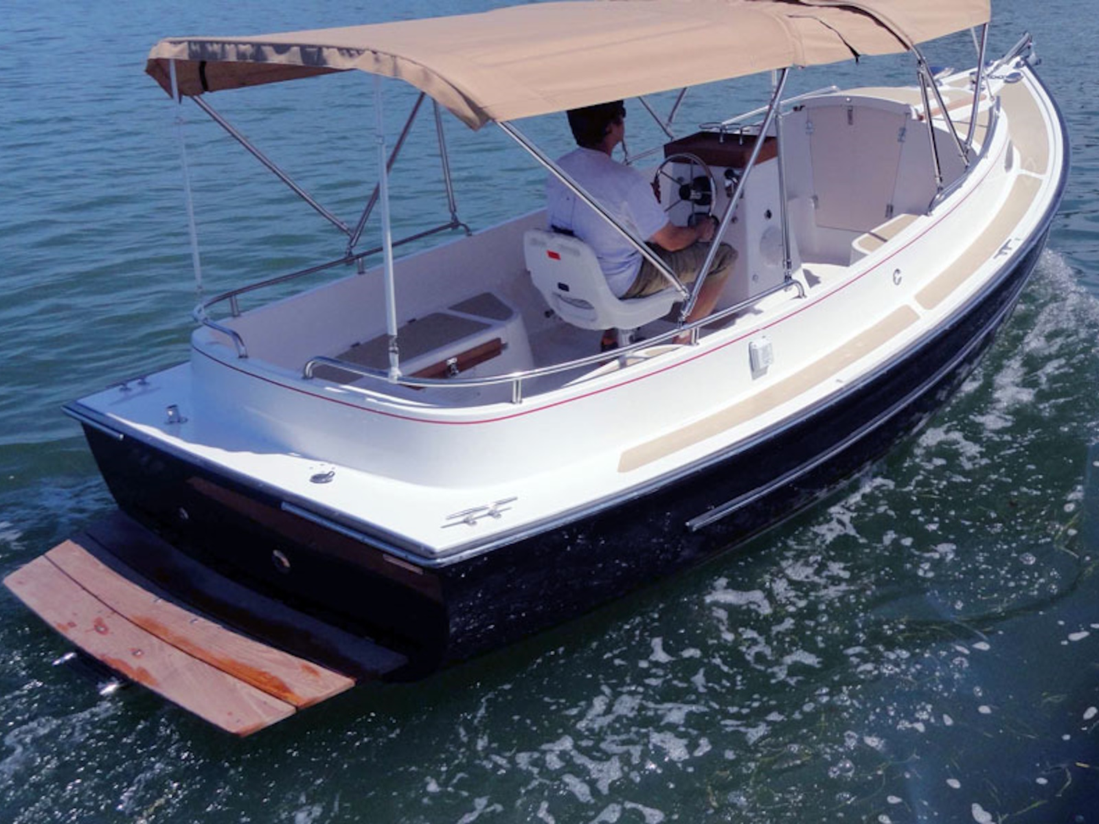 There is a complete list of available options including bimini tops, cockpit cushions with backrests, trailer, Elco electric propulsion, and a portable generator for extending the range of the electric model.