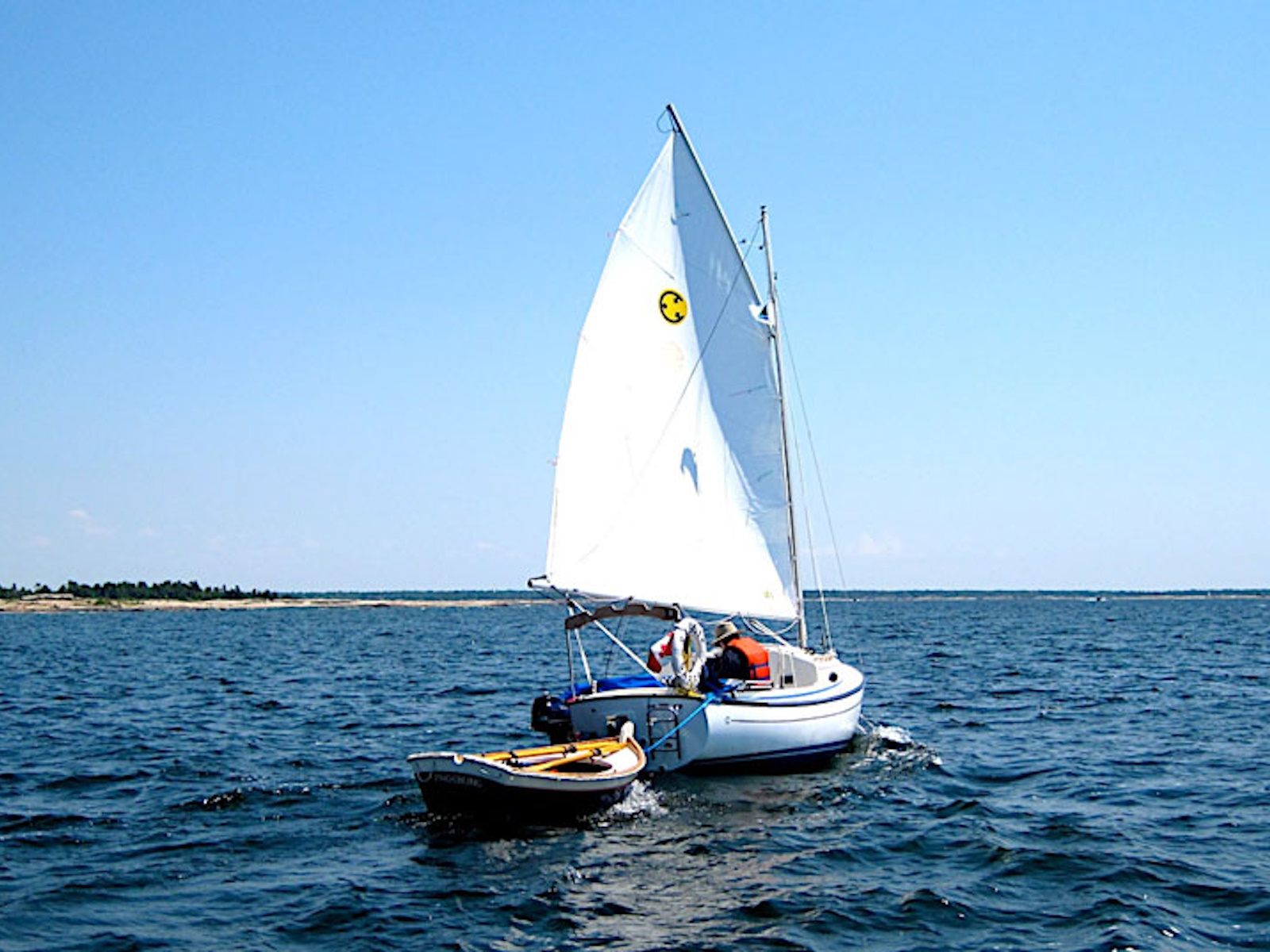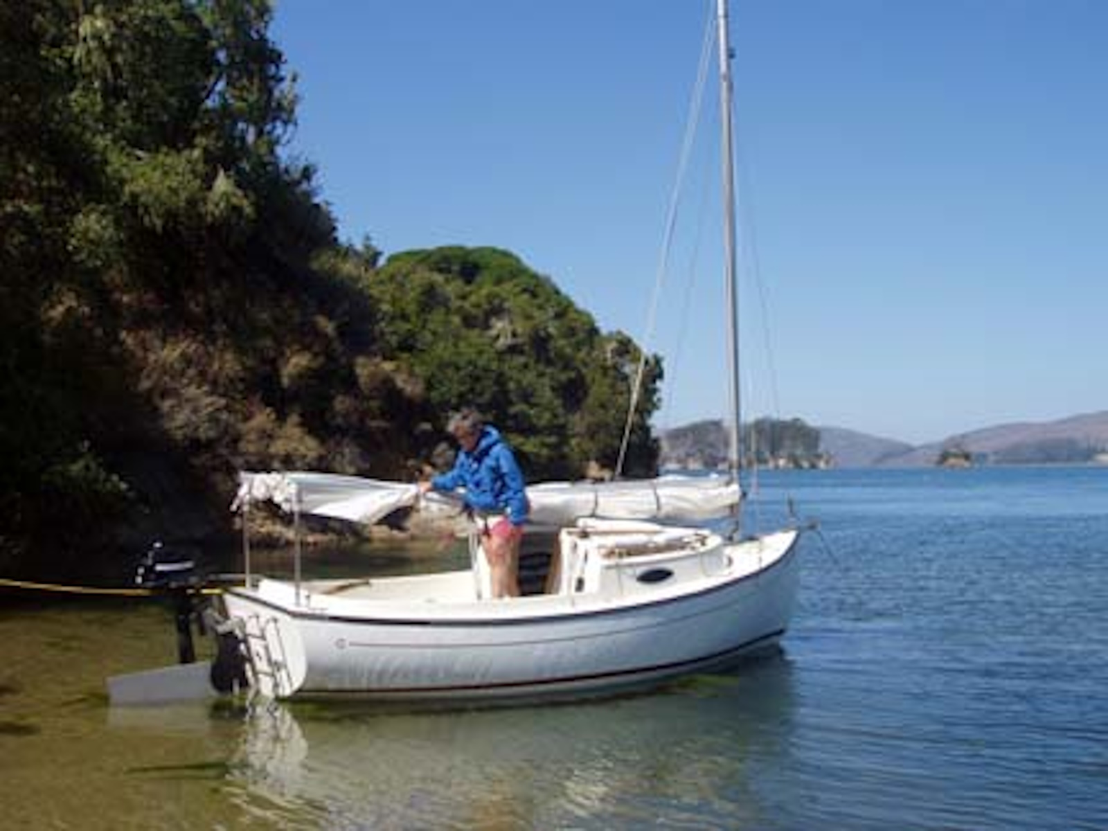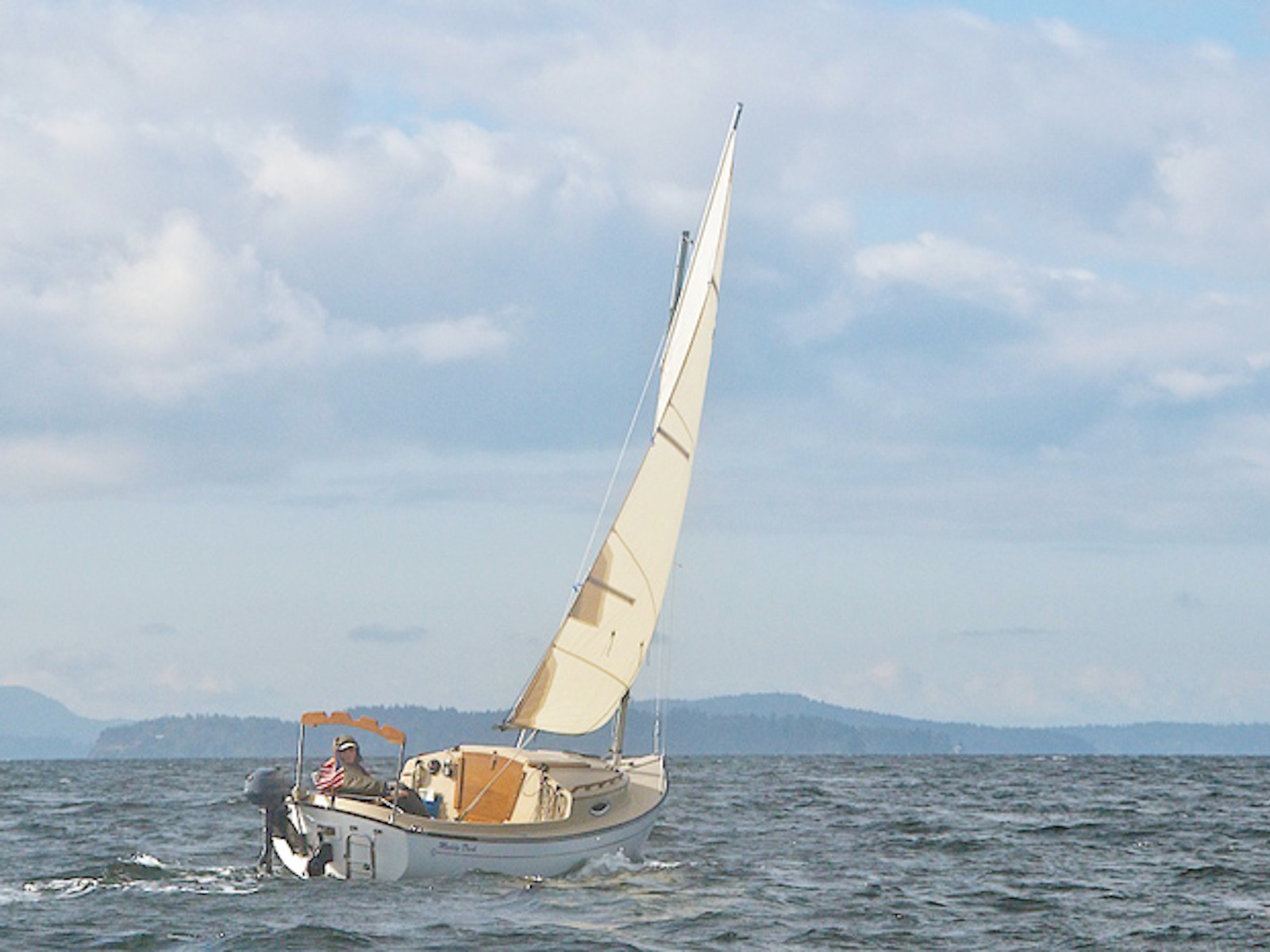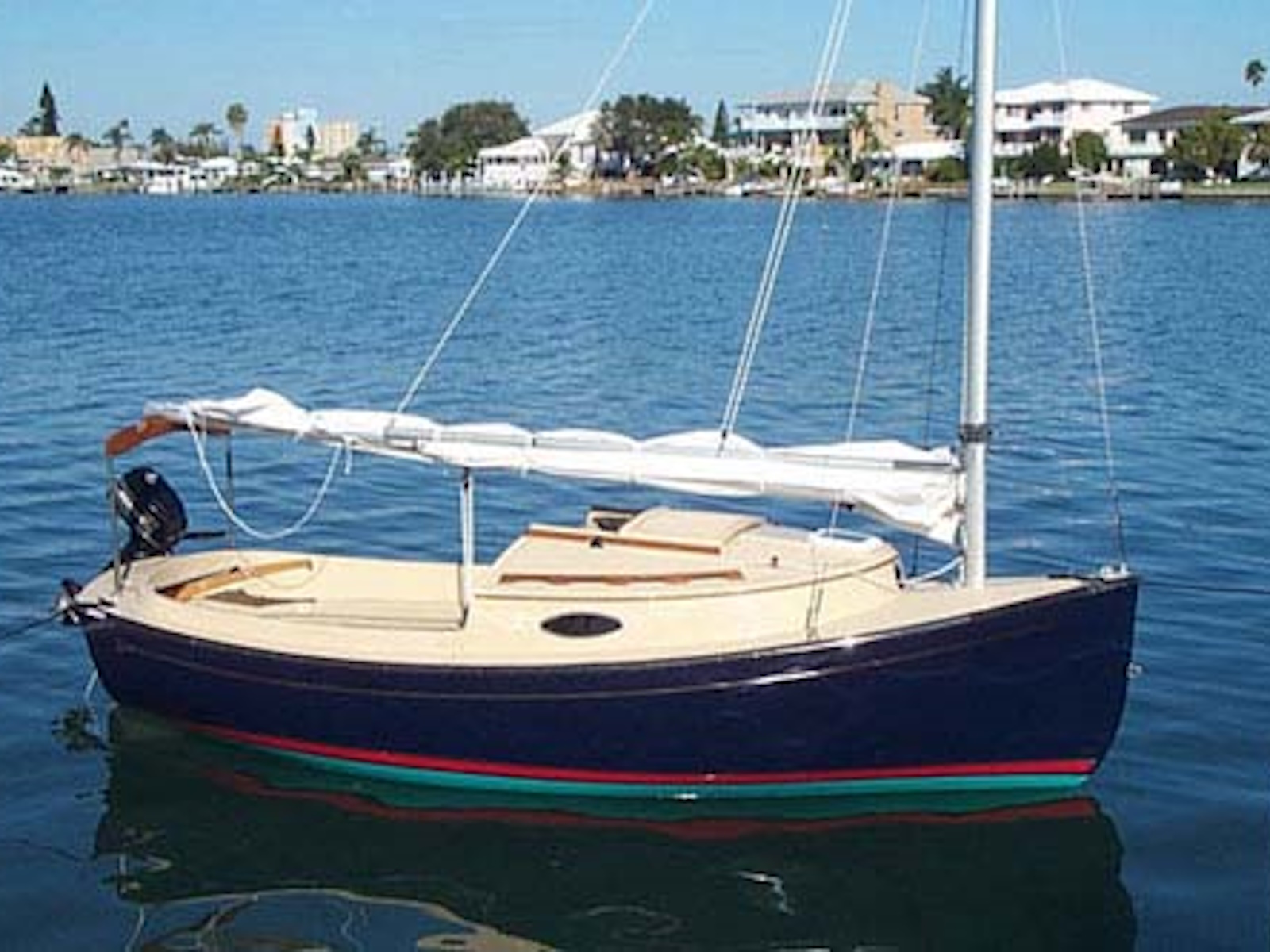 Clark Mills wanted to design a shoal daysailer that would rig and sail easily, quickly, and comfortably — as well as accommodate his family and friends. The Sun Cat was designed as an easily driven, roomy day boat and overnighter with a shoal draft to gunk hole along coasts and in harbors not accessible to more burdensome yachts.