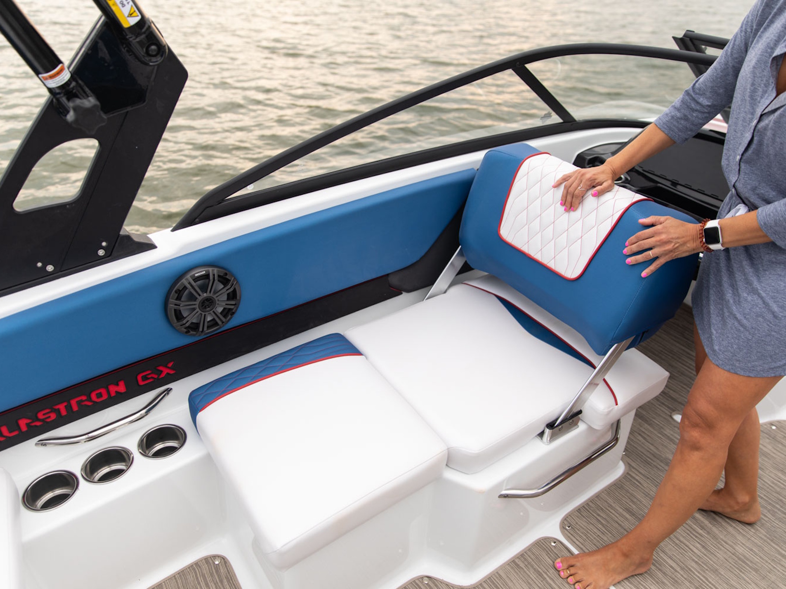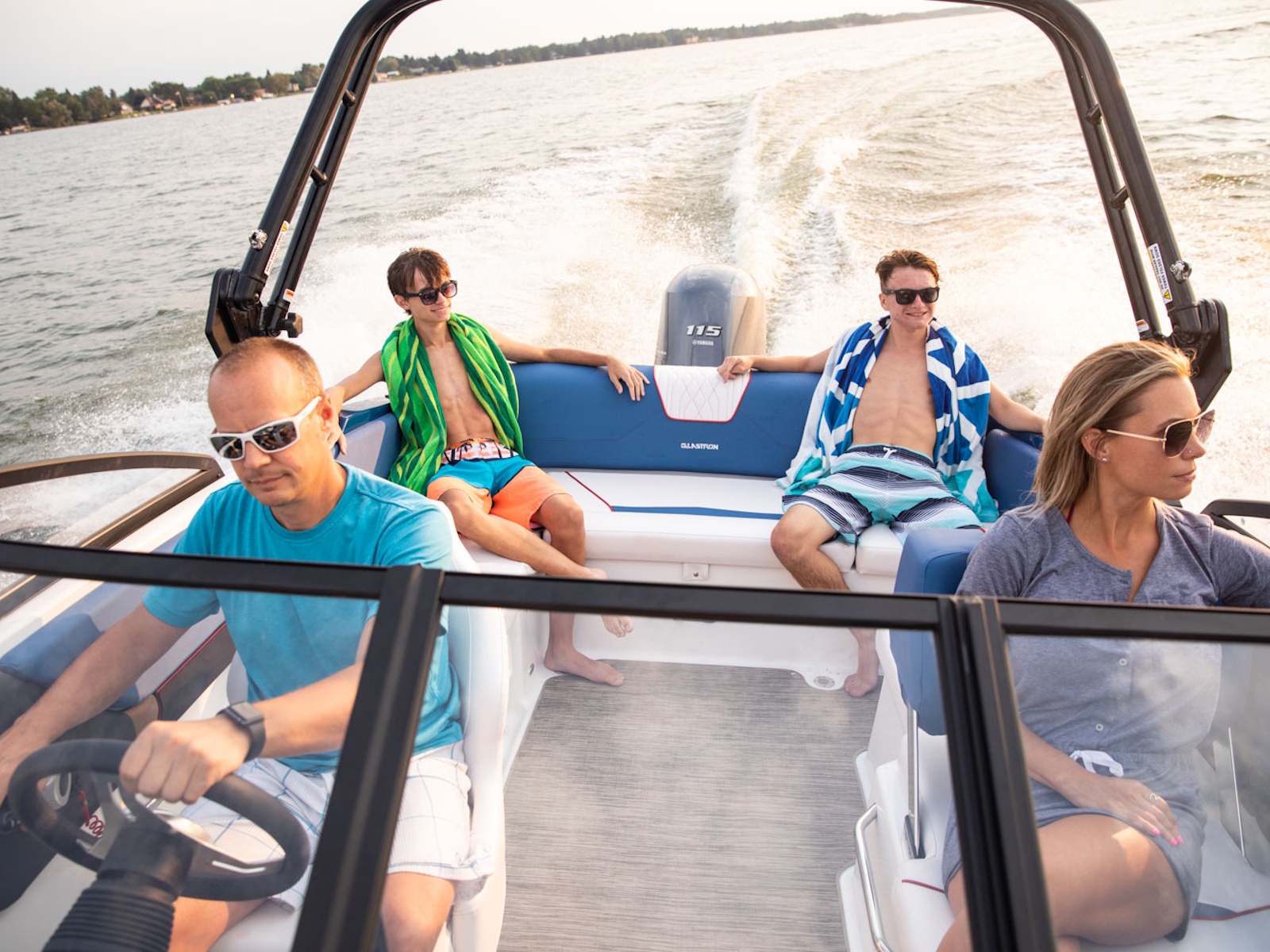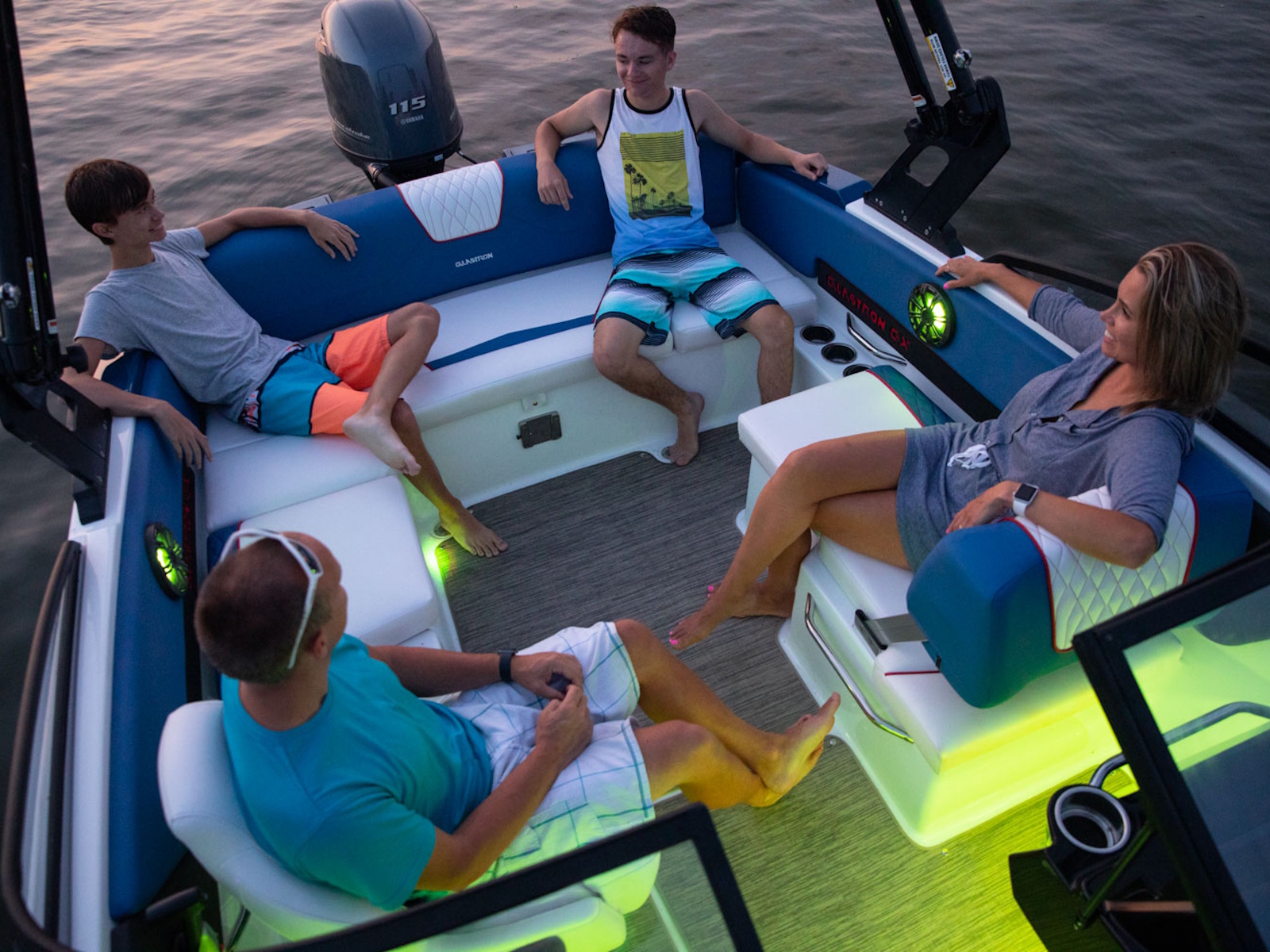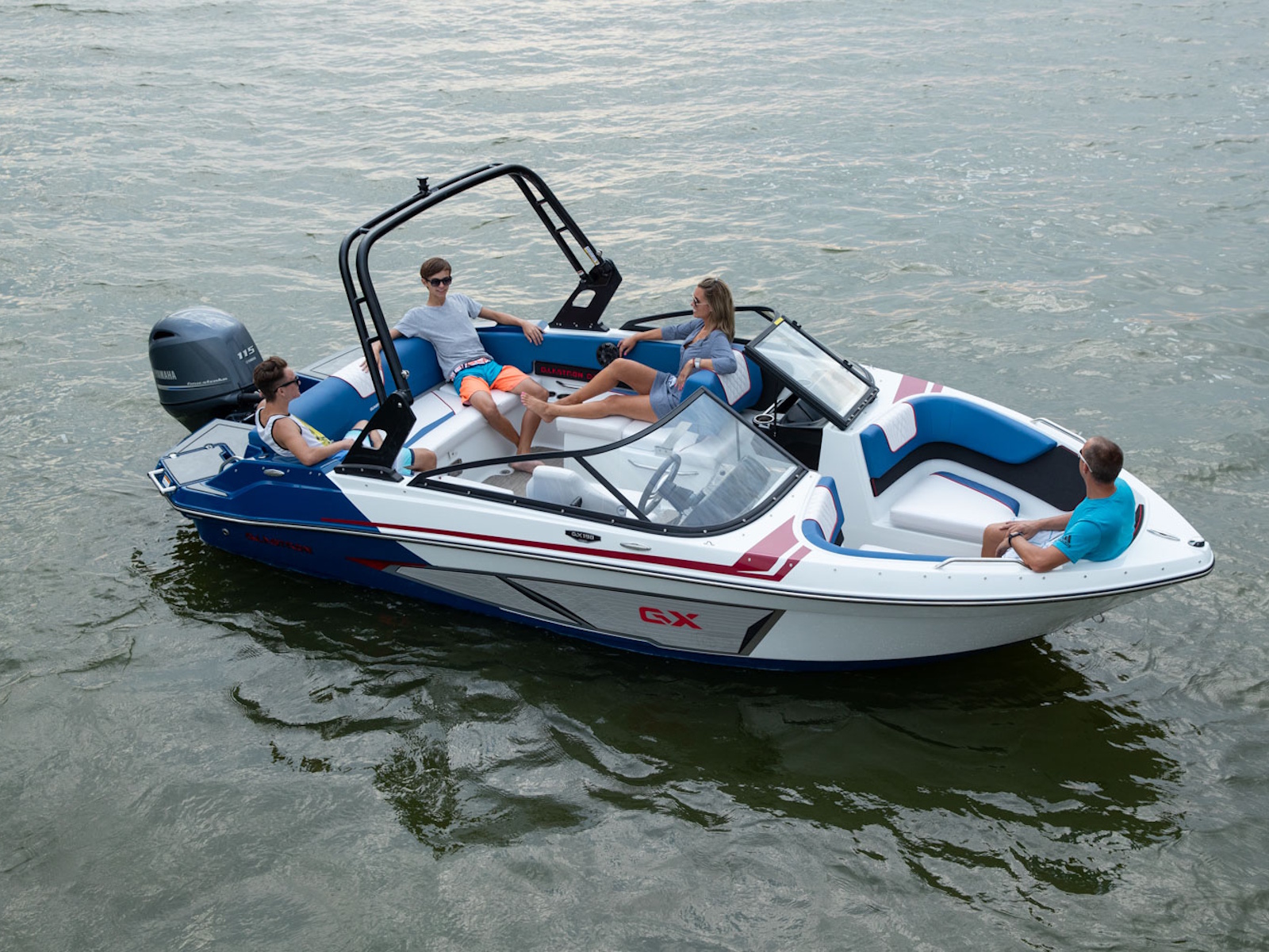 The Glastron DNA shows up in the GX 190 Sport. Sleek wrap-around windshield and three bold color options to choose from make it beautiful inside and out. Add the Z-shaped tower and premium sound with RGB lighting to complete the look and turn heads on the sandbar.