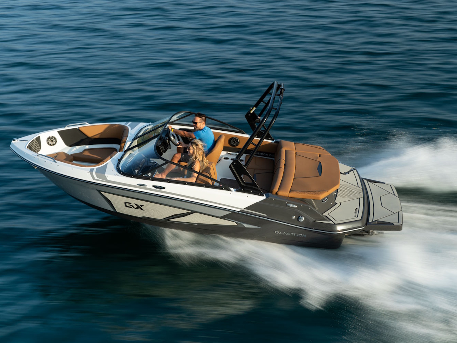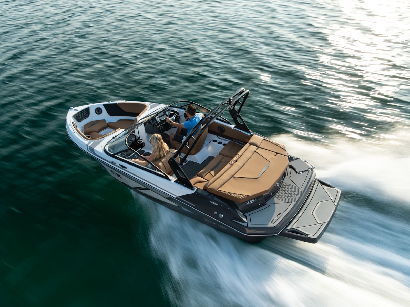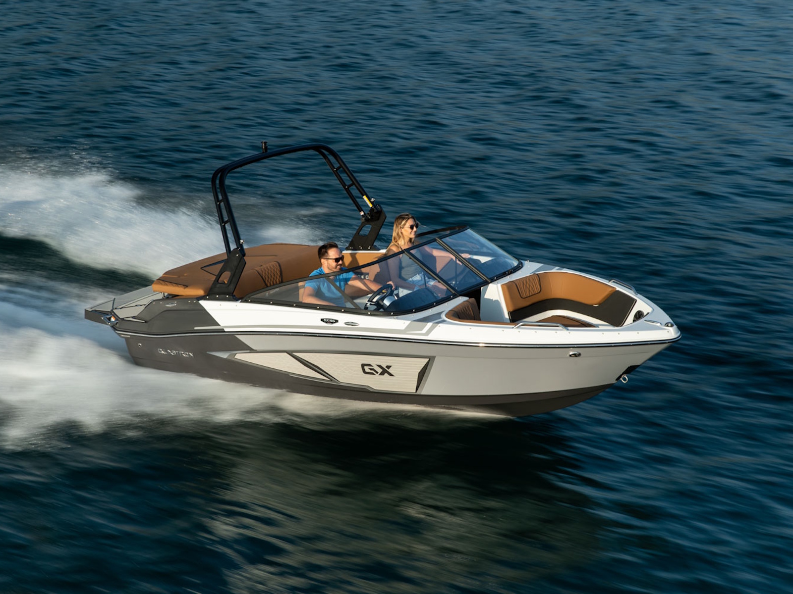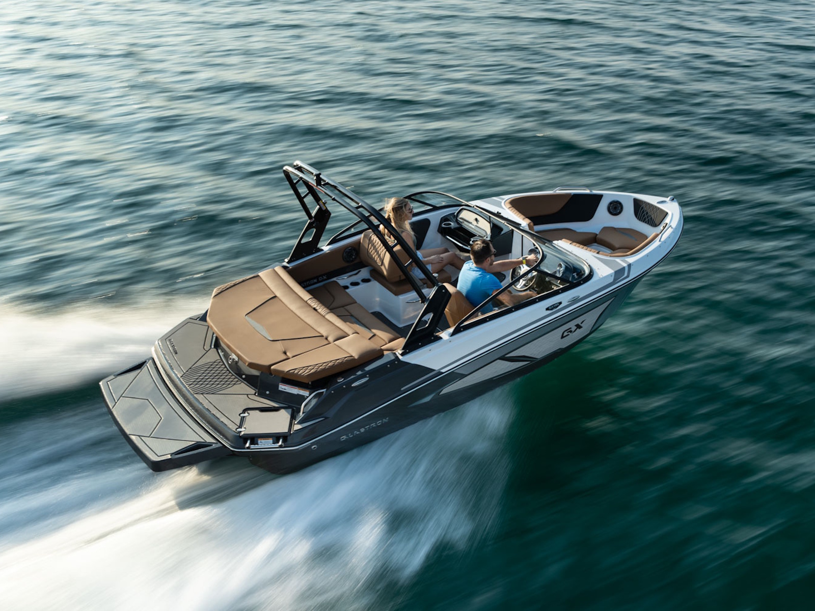 Bold and fun is the best way to describe the GX 195 Sport. The full-width swim platform with standard swim mat features a side-mounted ladder that easily tucks away. For those who crave even more access to the water, we have an extended swim platform option, great for water sports.