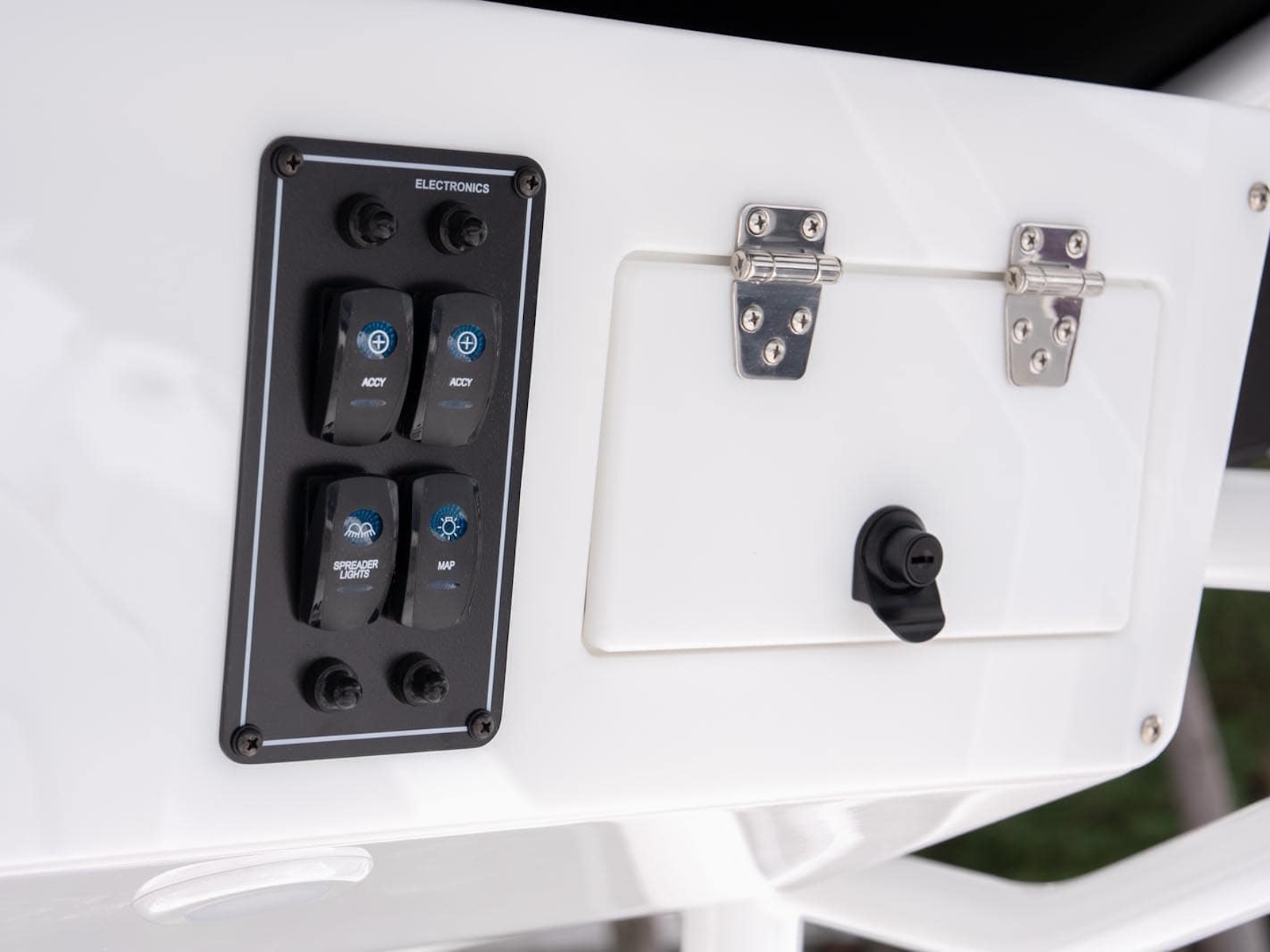 - Fishing Package (raw water washdown, trolling motor harness, recirculating rear well) & Fishing Seat w/ Base