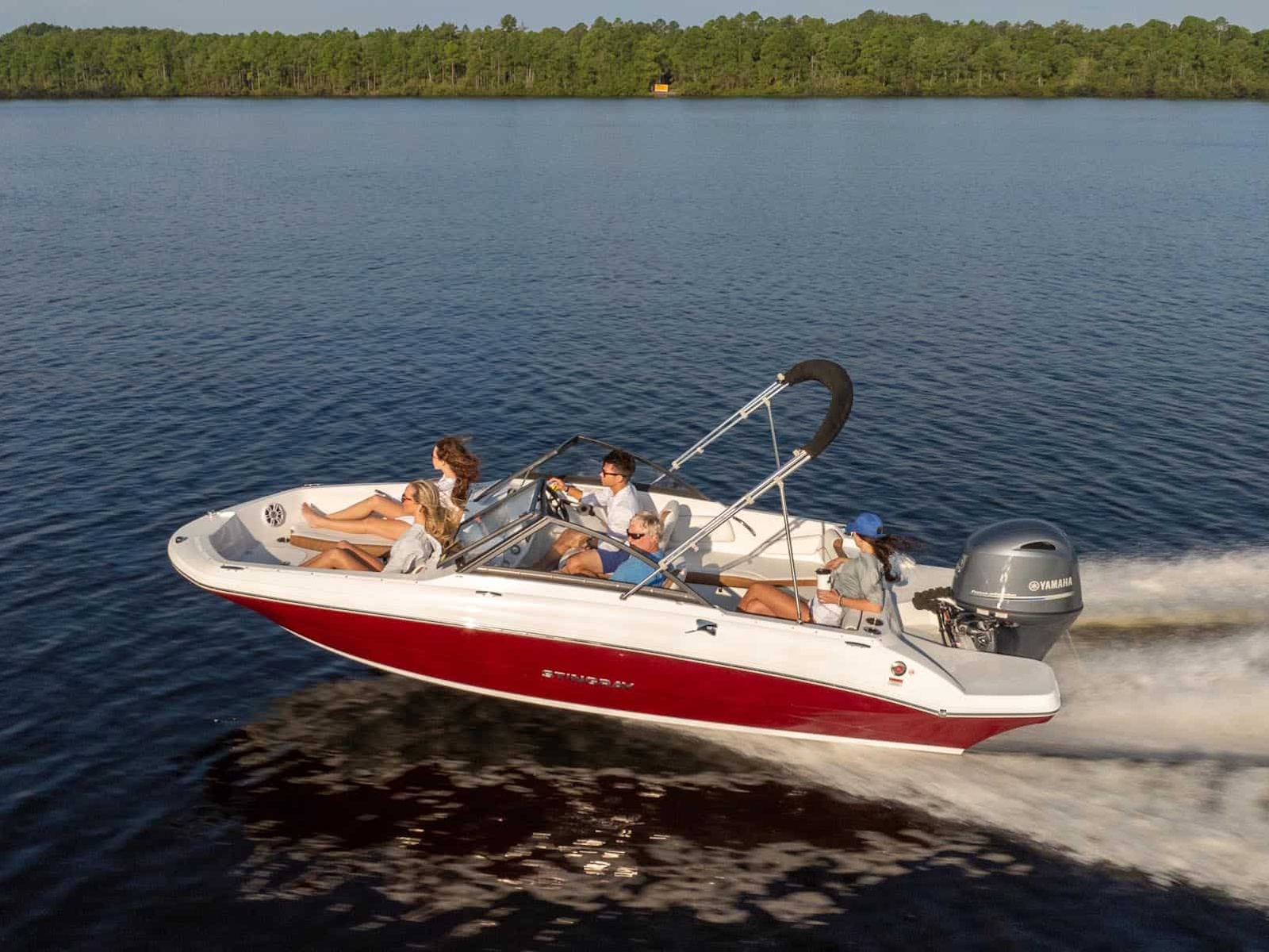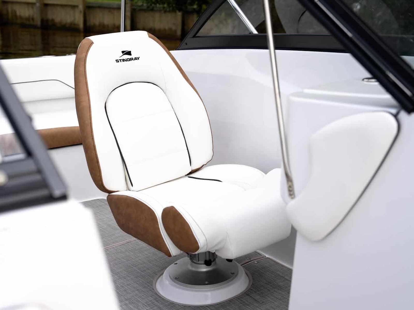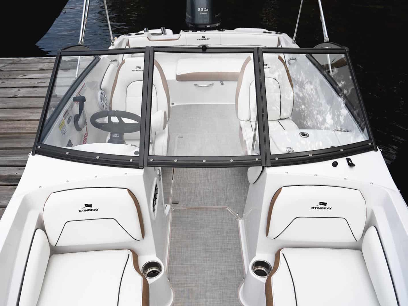 Do you love the open layout you get from a traditional deck boat but miss the full windshield of a standard bowrider? With the 191DC, you get the best of both. It has all the interior room and storage space of our very popular 182SC Deck Boat, but incorporates a full windshield to shield your passengers from the wind. Like other STINGRAY models, the 191DC features deep cockpit and bow areas for extra safety and security when underway. STINGRAY deck boats feature outboard power for ease of maintenance and large swim pods flank each side of the engine to make boarding a breeze. Contact your nearest STINGRAY dealer to schedule a test ride so you can experience the 191DC Dual Console for yourself.