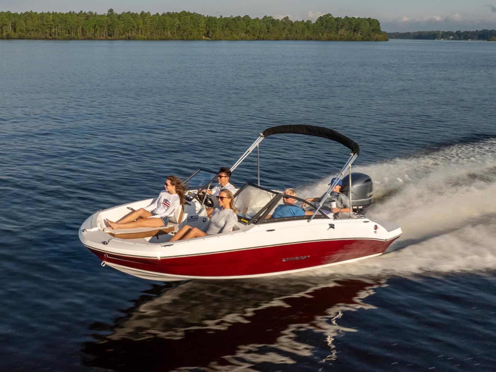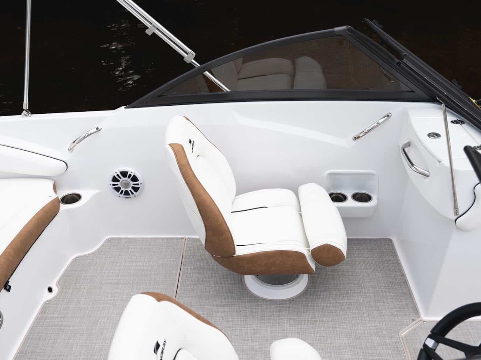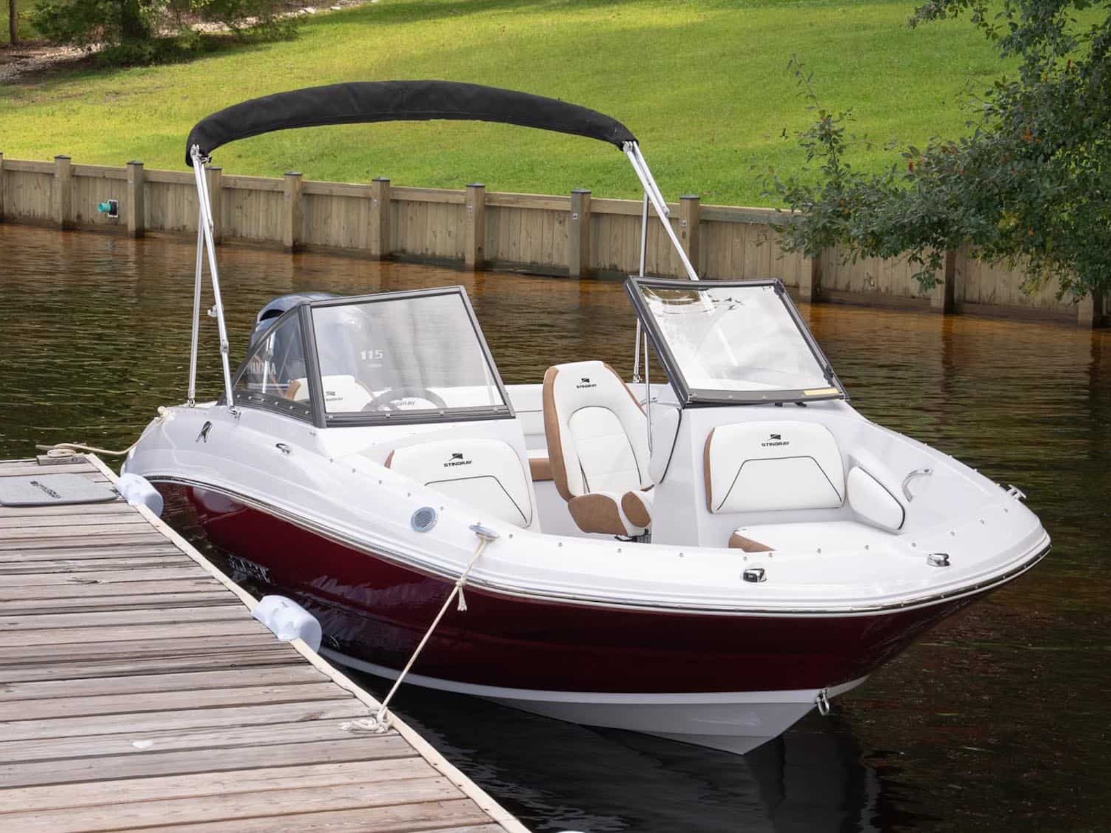 Do you love the open layout you get from a traditional deck boat but miss the full windshield of a standard bowrider? With the 191DC, you get the best of both. It has all the interior room and storage space of our very popular 182SC Deck Boat, but incorporates a full windshield to shield your passengers from the wind. Like other STINGRAY models, the 191DC features deep cockpit and bow areas for extra safety and security when underway. STINGRAY deck boats feature outboard power for ease of maintenance and large swim pods flank each side of the engine to make boarding a breeze. Contact your nearest STINGRAY dealer to schedule a test ride so you can experience the 191DC Dual Console for yourself.