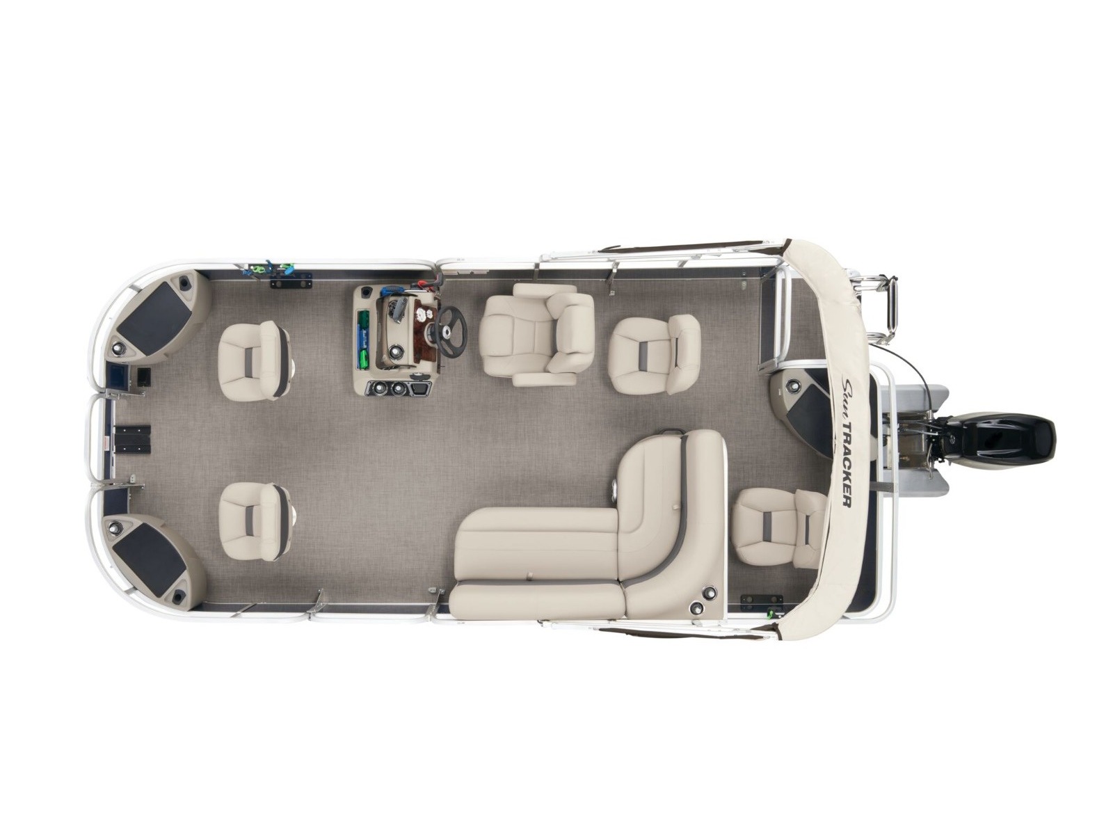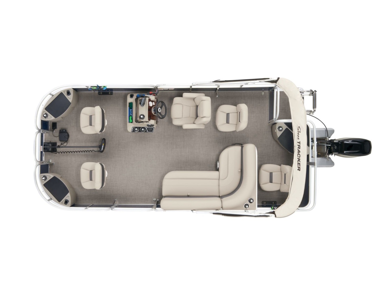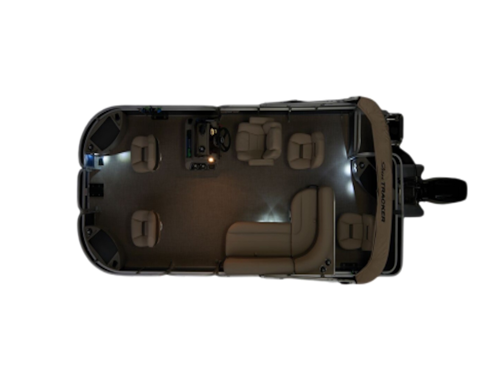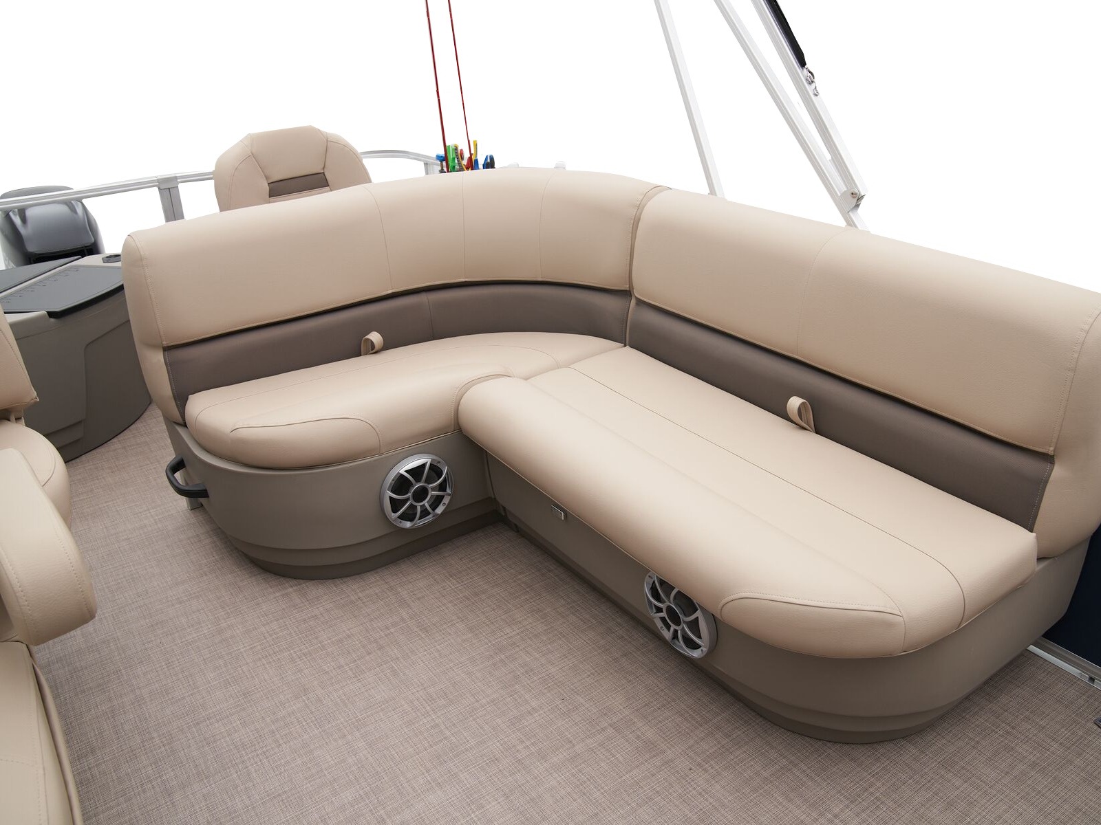 - Driver console w/vertical rod holder, integrated storage, drink holders & side-mounted controls