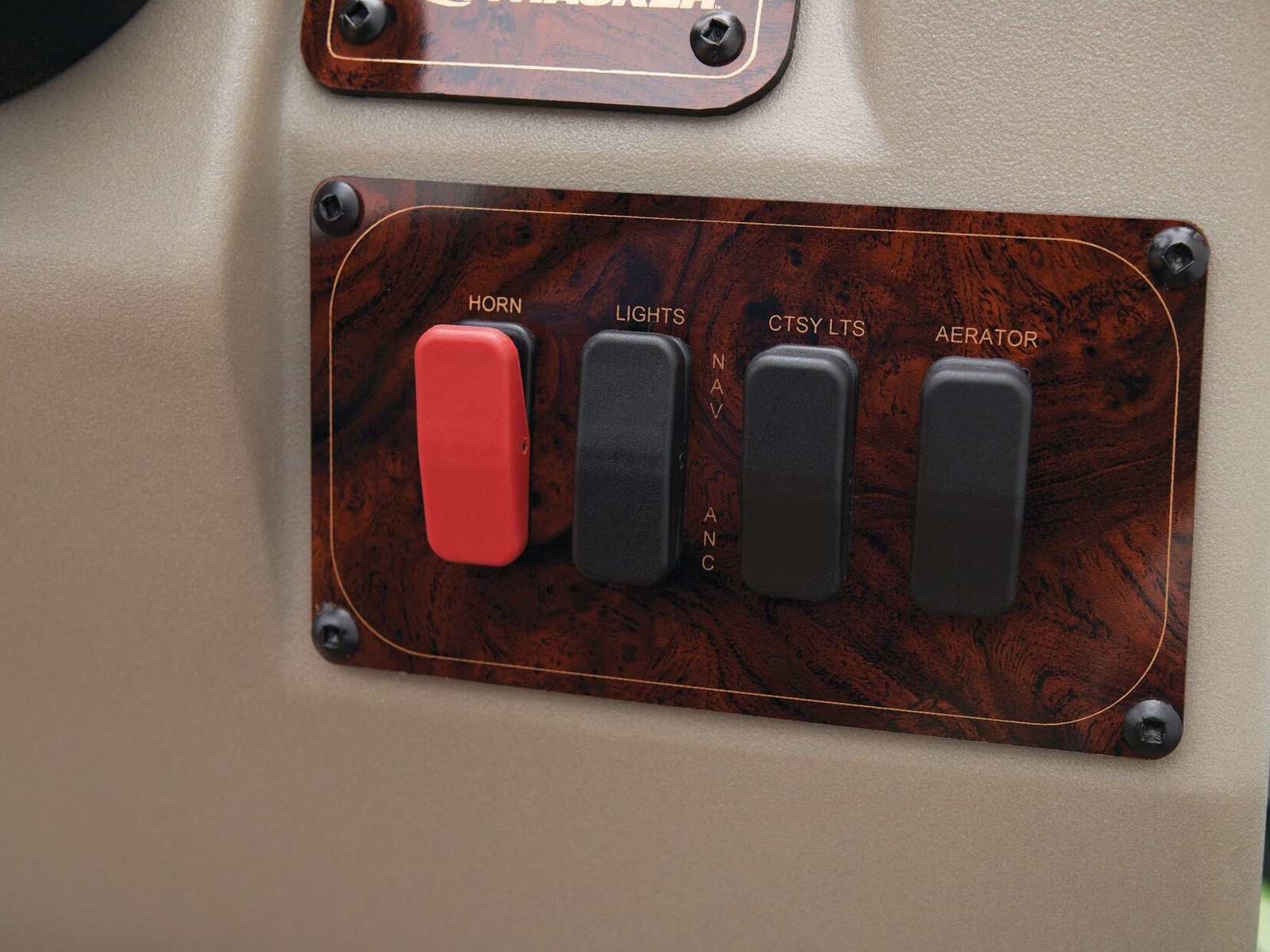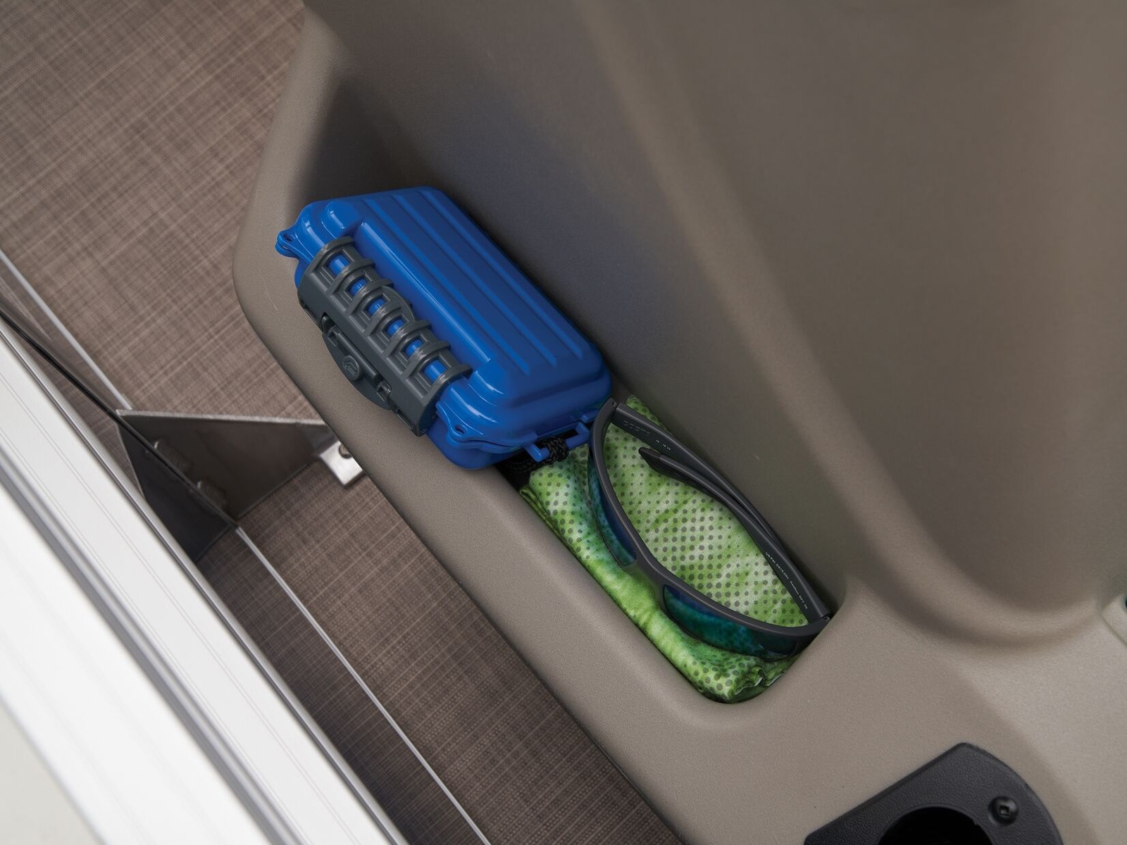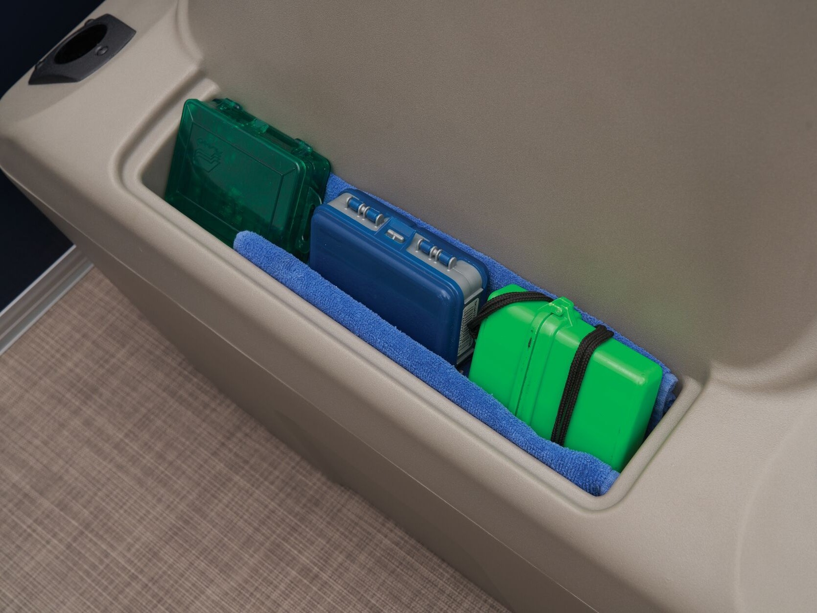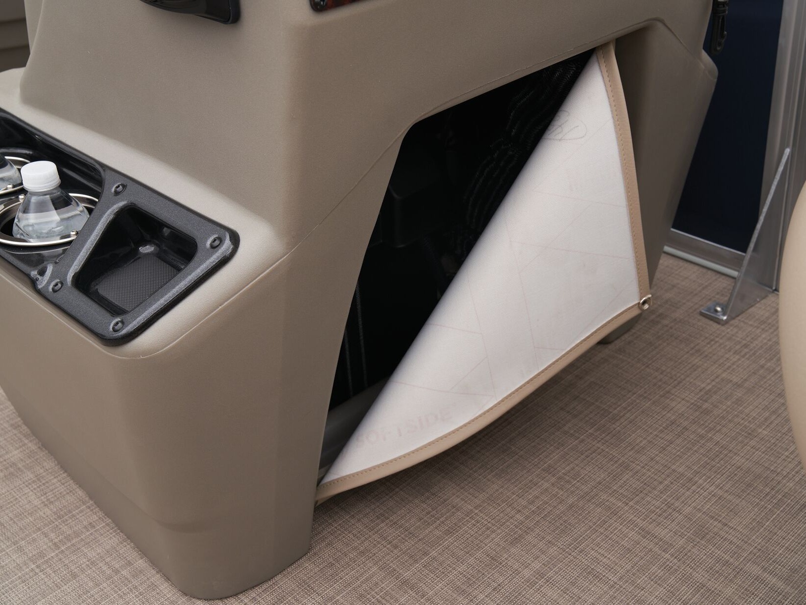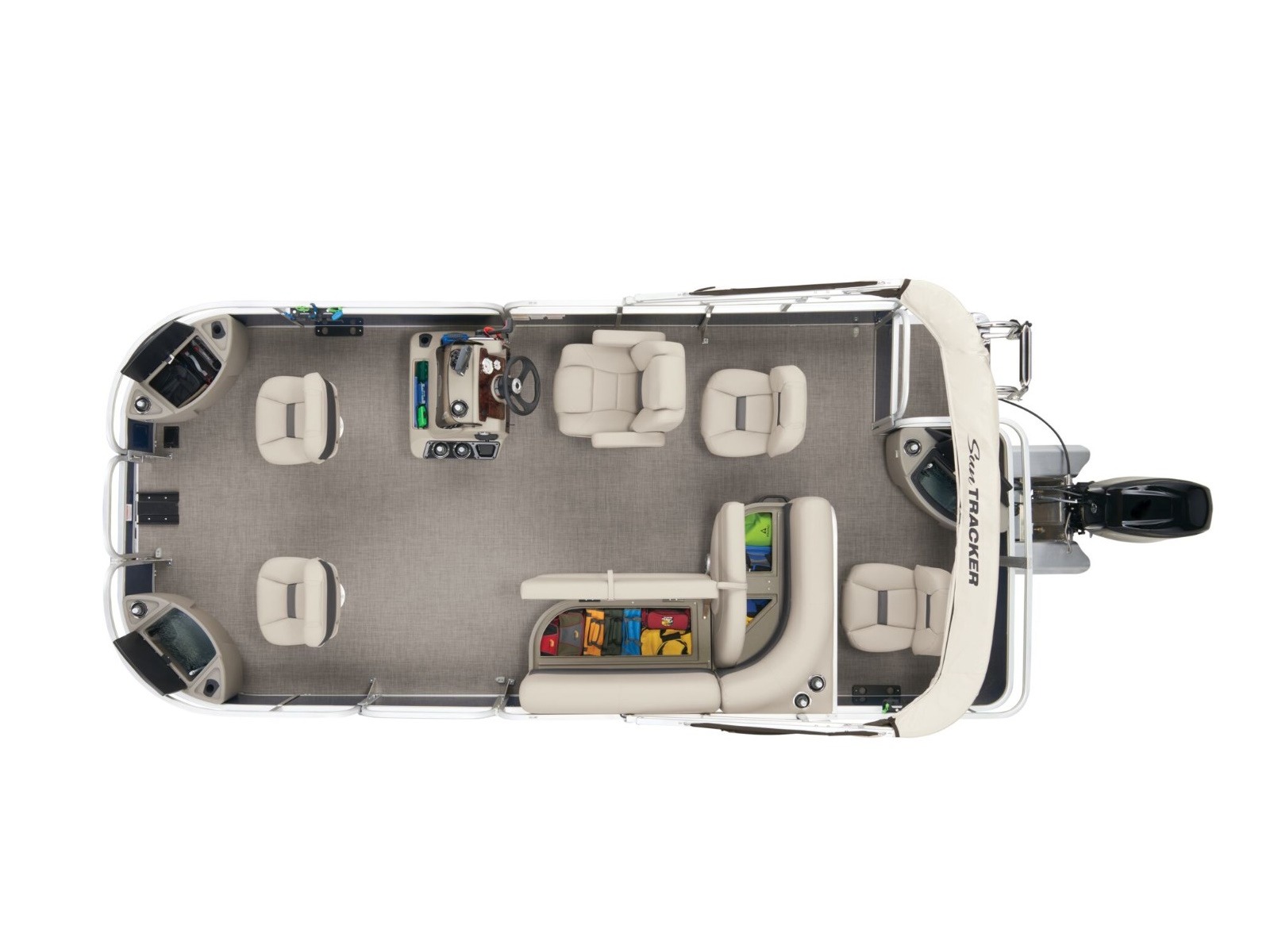- Driver console w/vertical rod holder, integrated storage, drink holders & side-mounted controls