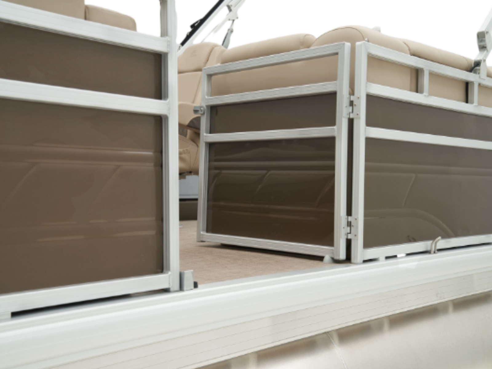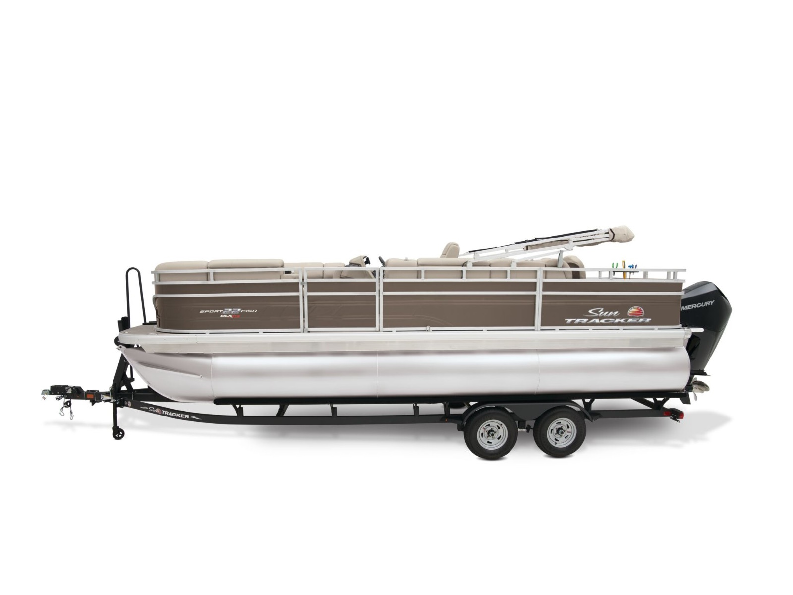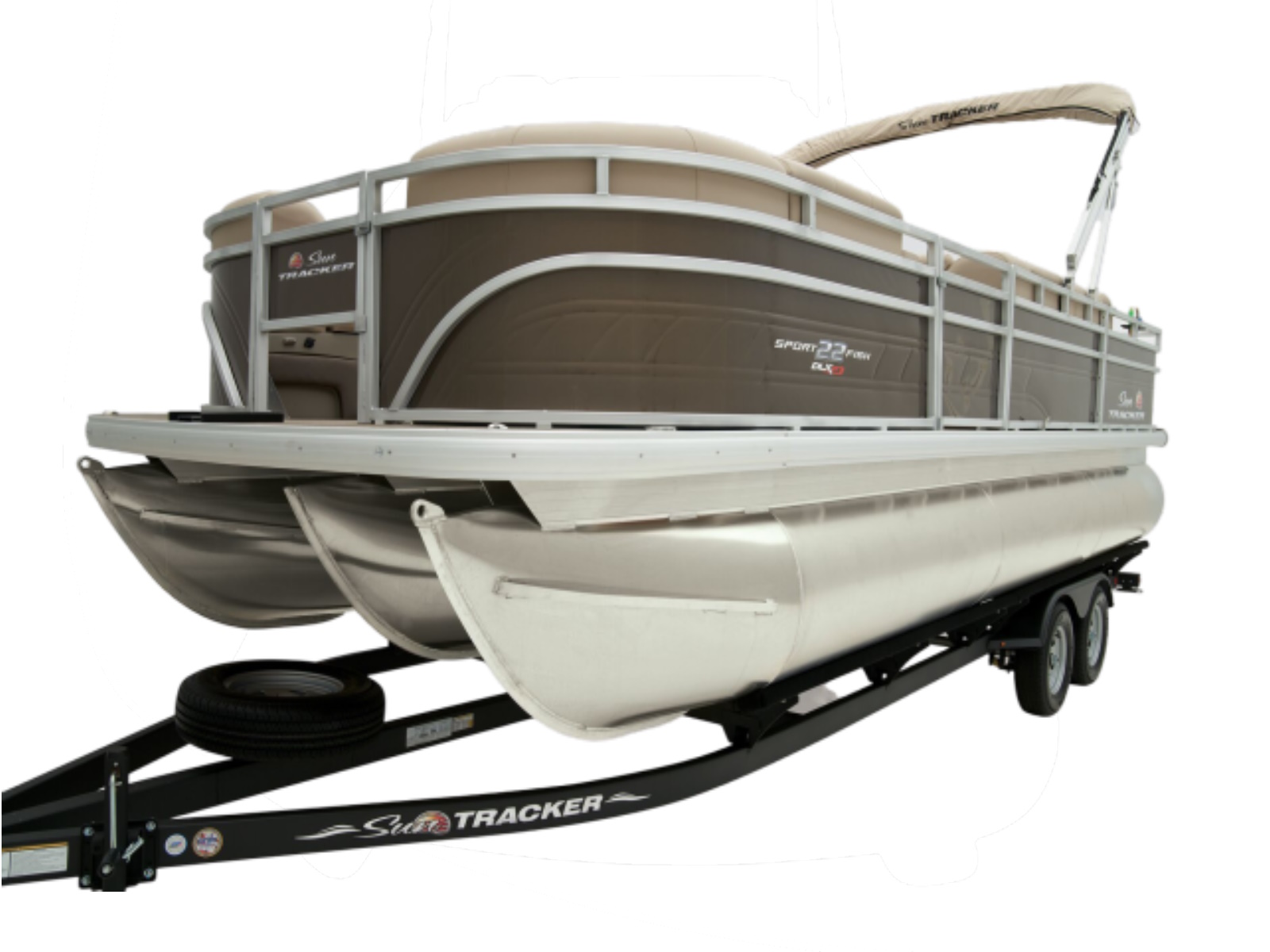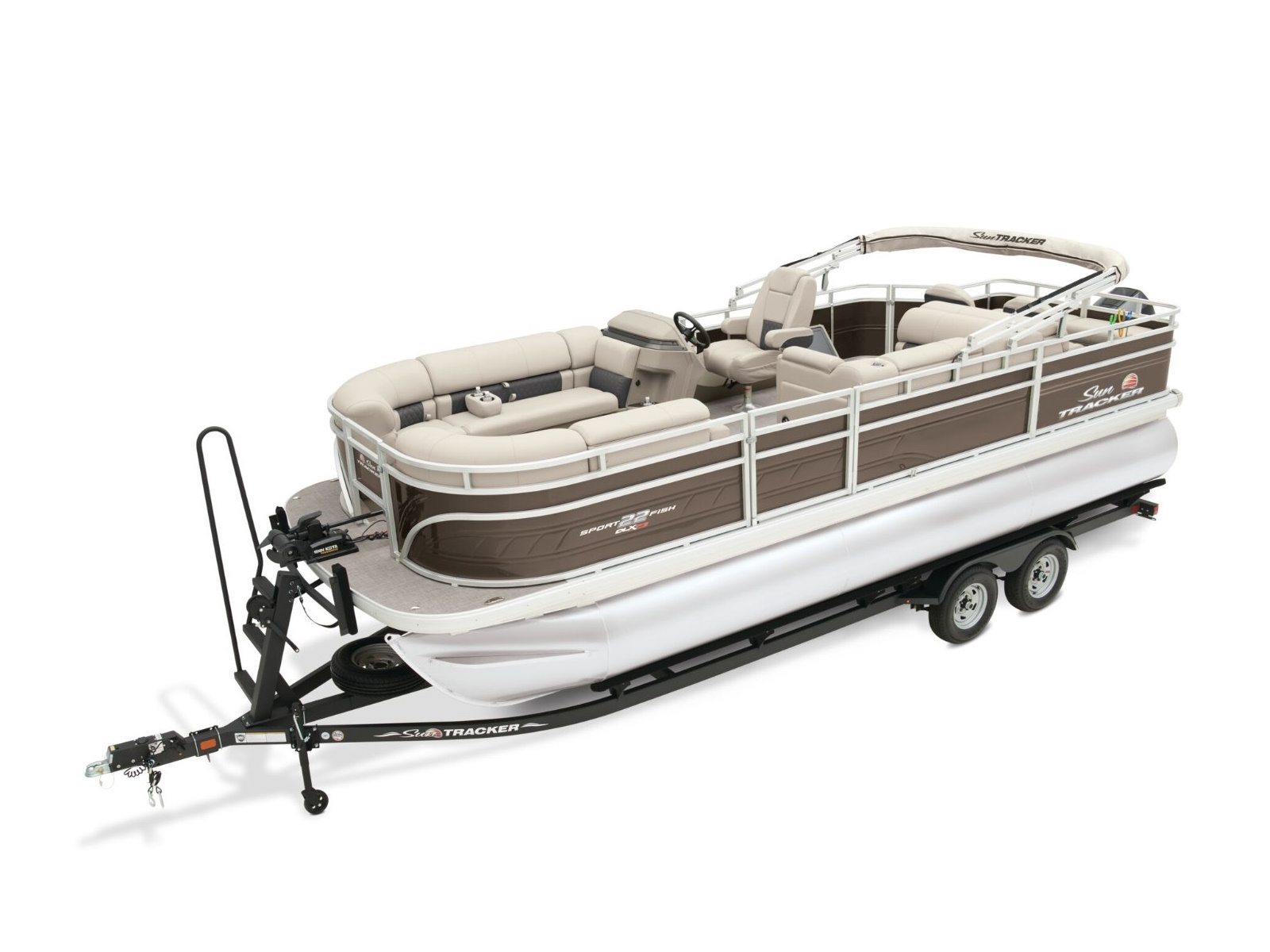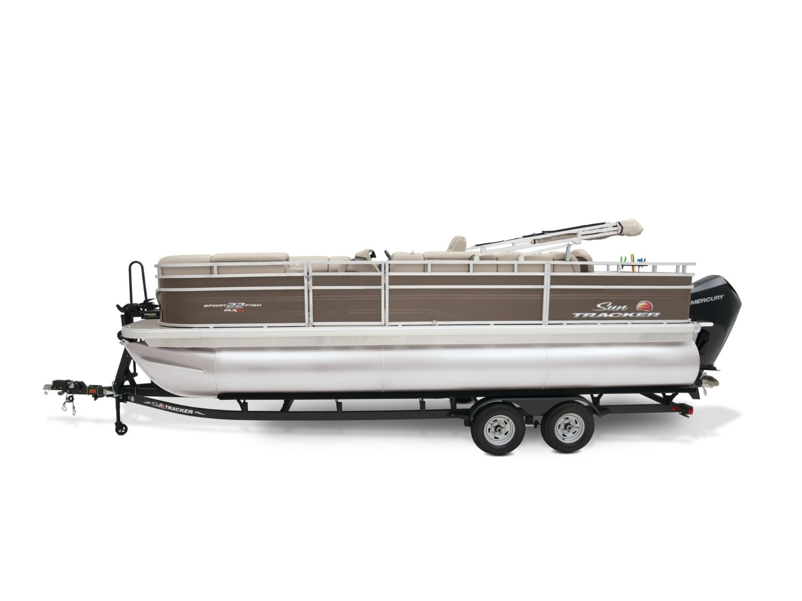 - 10' (3.05 m) SUN TRACKER® QuickLift™ Bimini top w/LED courtesy lights, storage pockets & protective boot (color-coordinated Black w/Black fencing or Sand w/Caribou fencing)