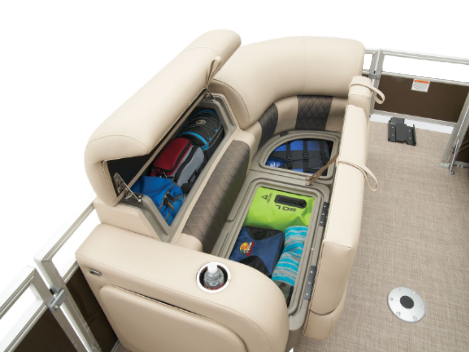 - Bow port couch w/STOW MORE™, underseat storage & armrest w/drink holder