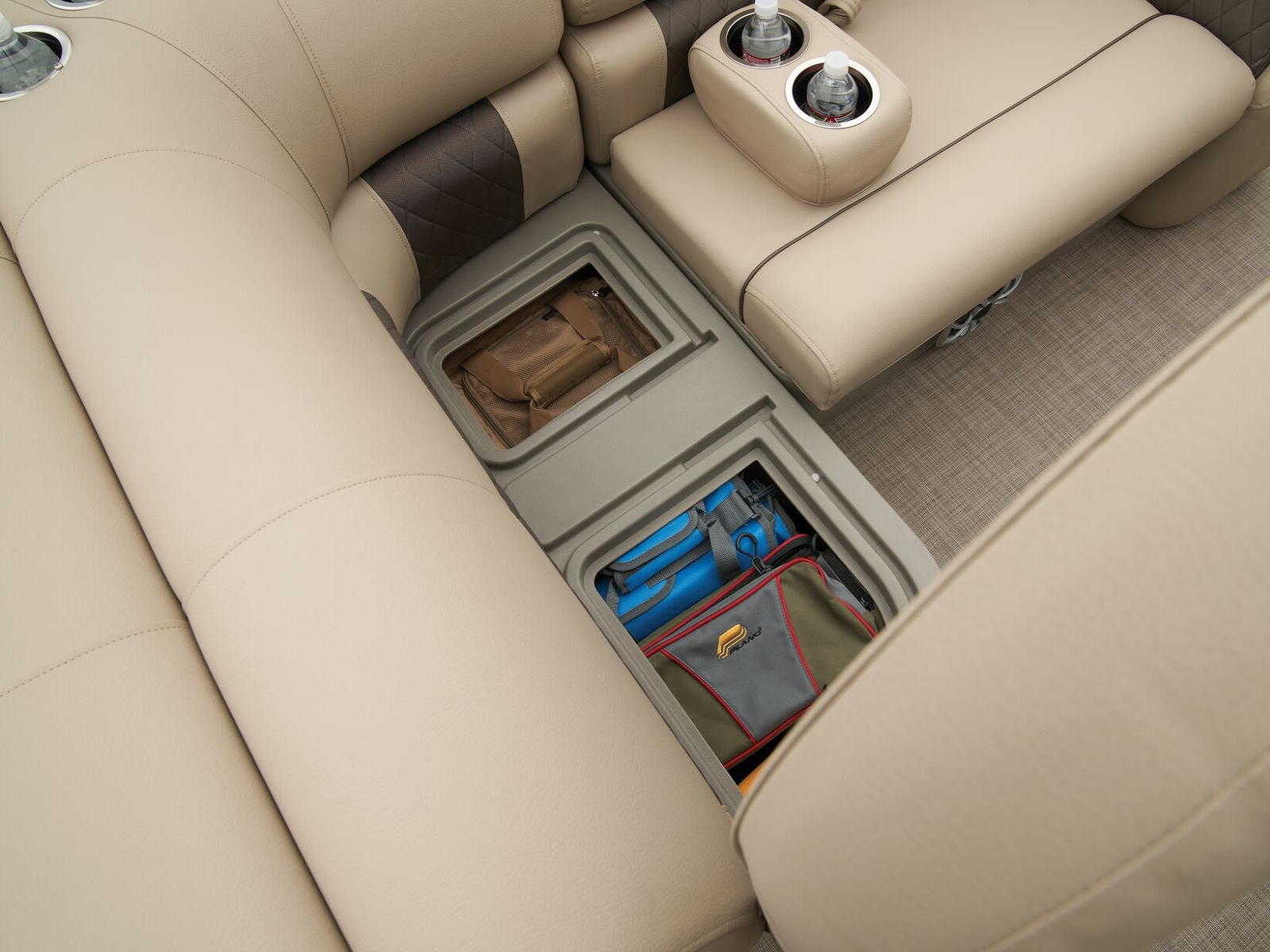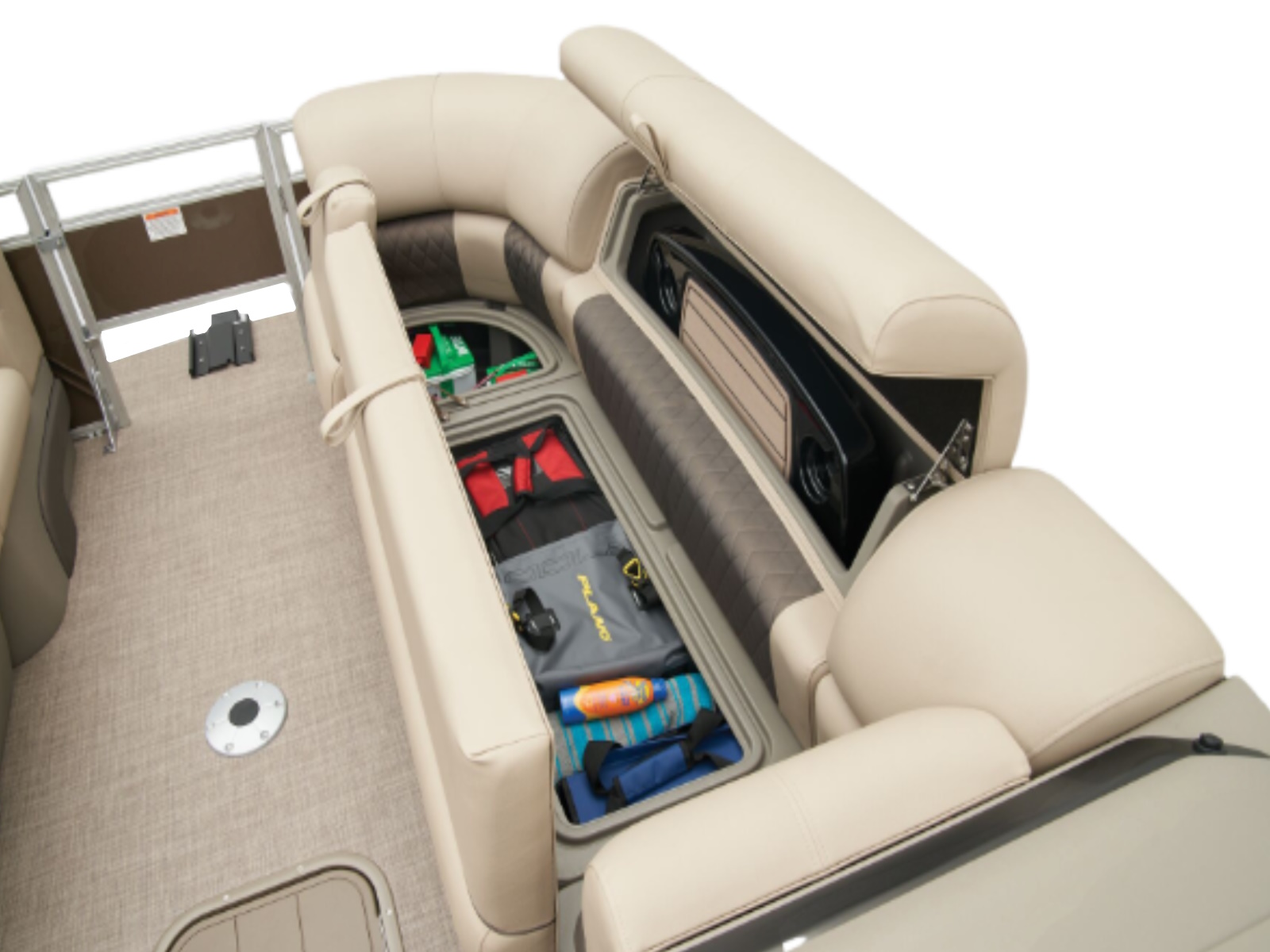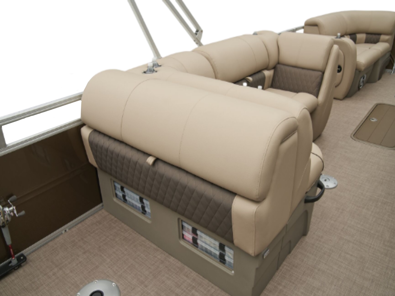 - Aft L-lounge couches w/STOW MORE™ & underseat, lockable storage