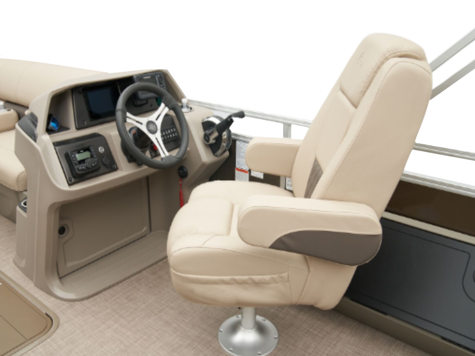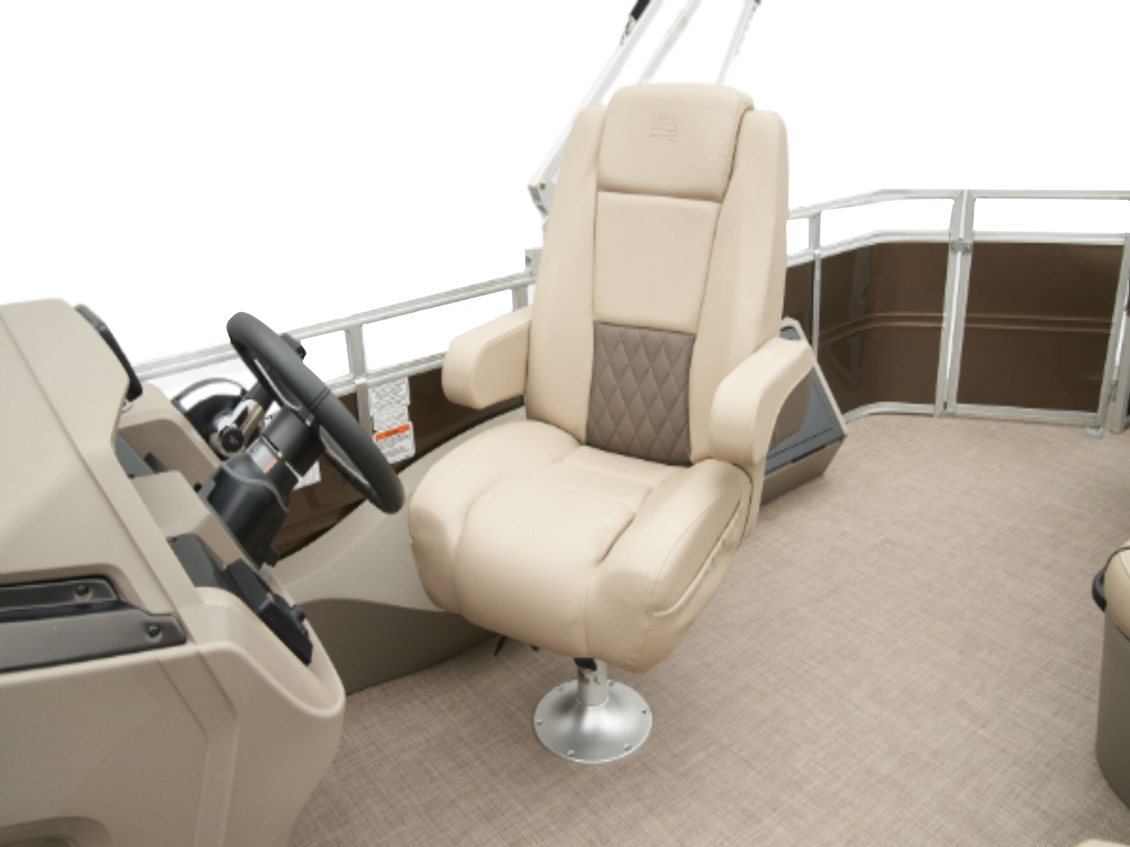 - Reclining, high-back swiveling helm bucket seat w/self-leveling armrests