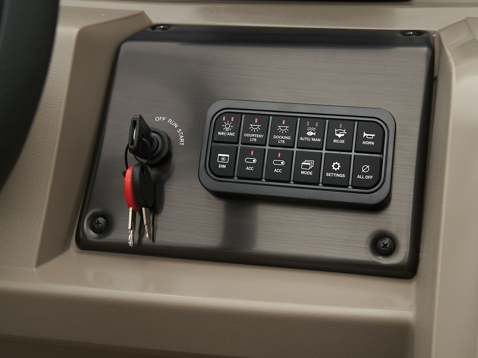 - Easy-access marine-grade automotive-style fuse panel w/latching fuse block door
