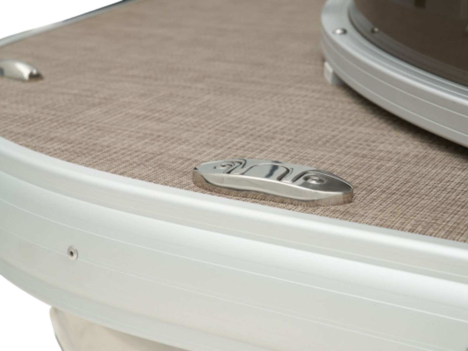 - Extruded & anodized aluminum deck edging w/polished aft corner covers