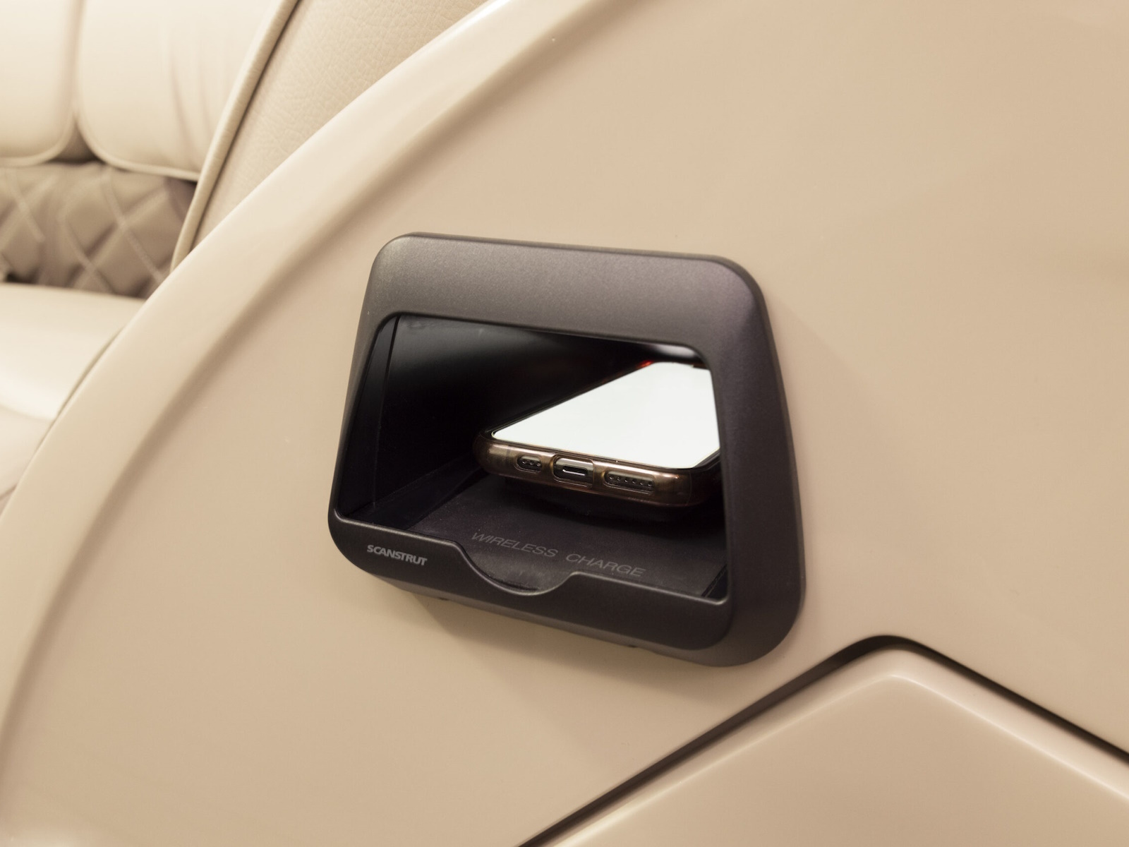 - Wireless phone charger mounted in console
