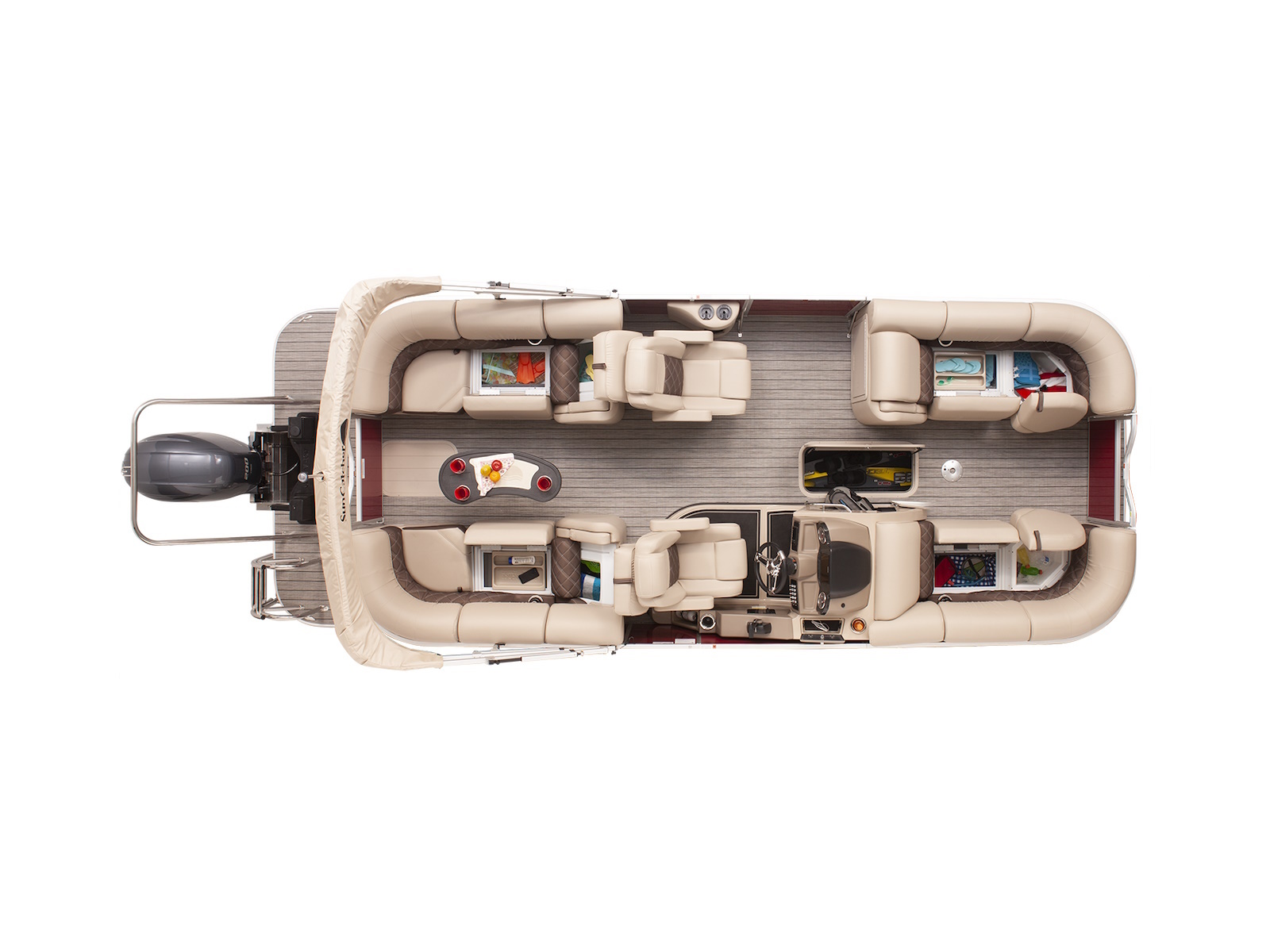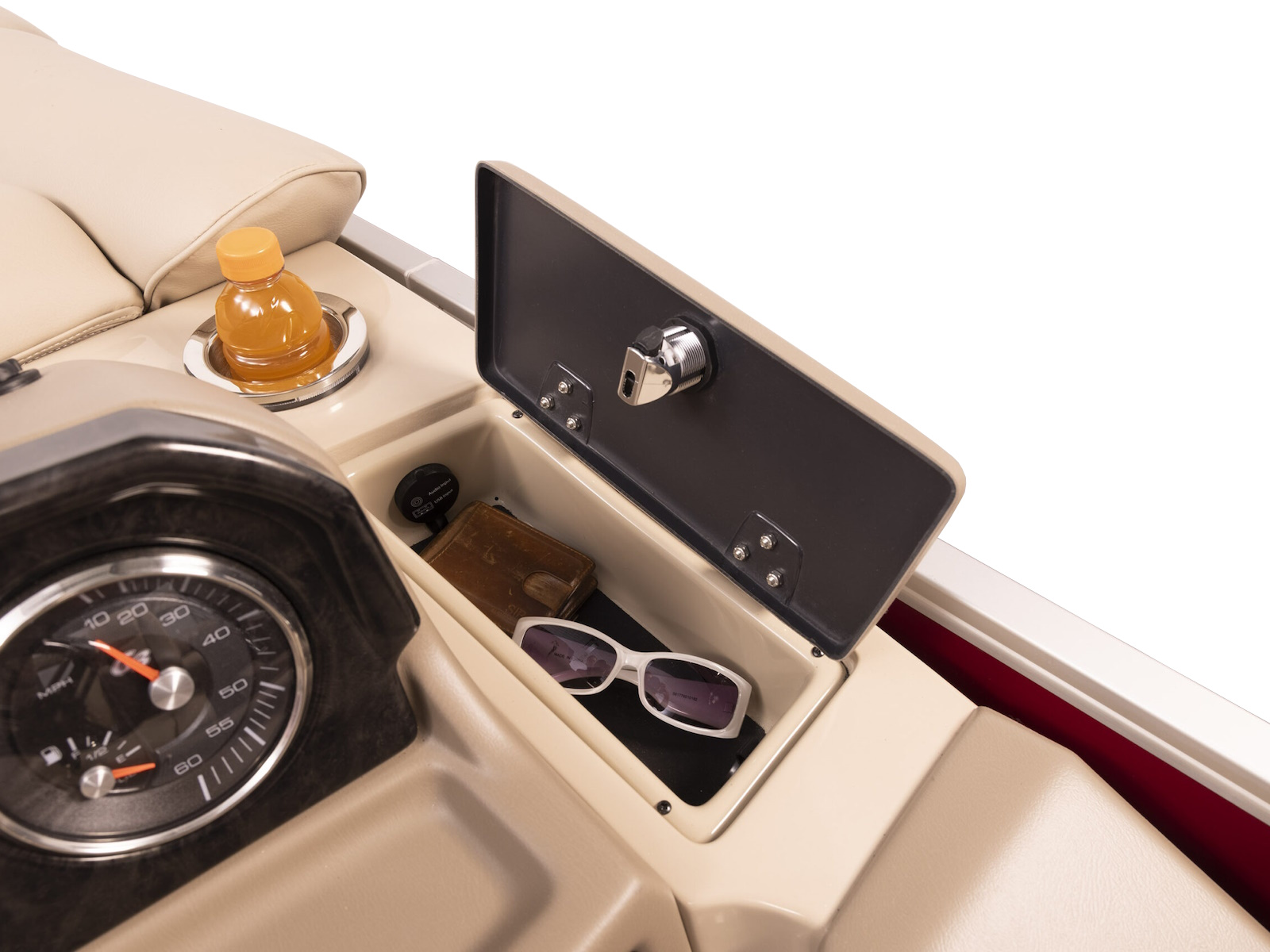 - Built in cooler under starboard bow corner cushion