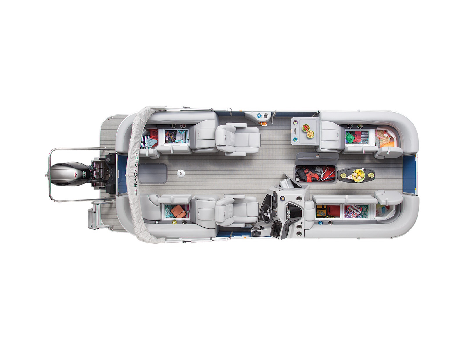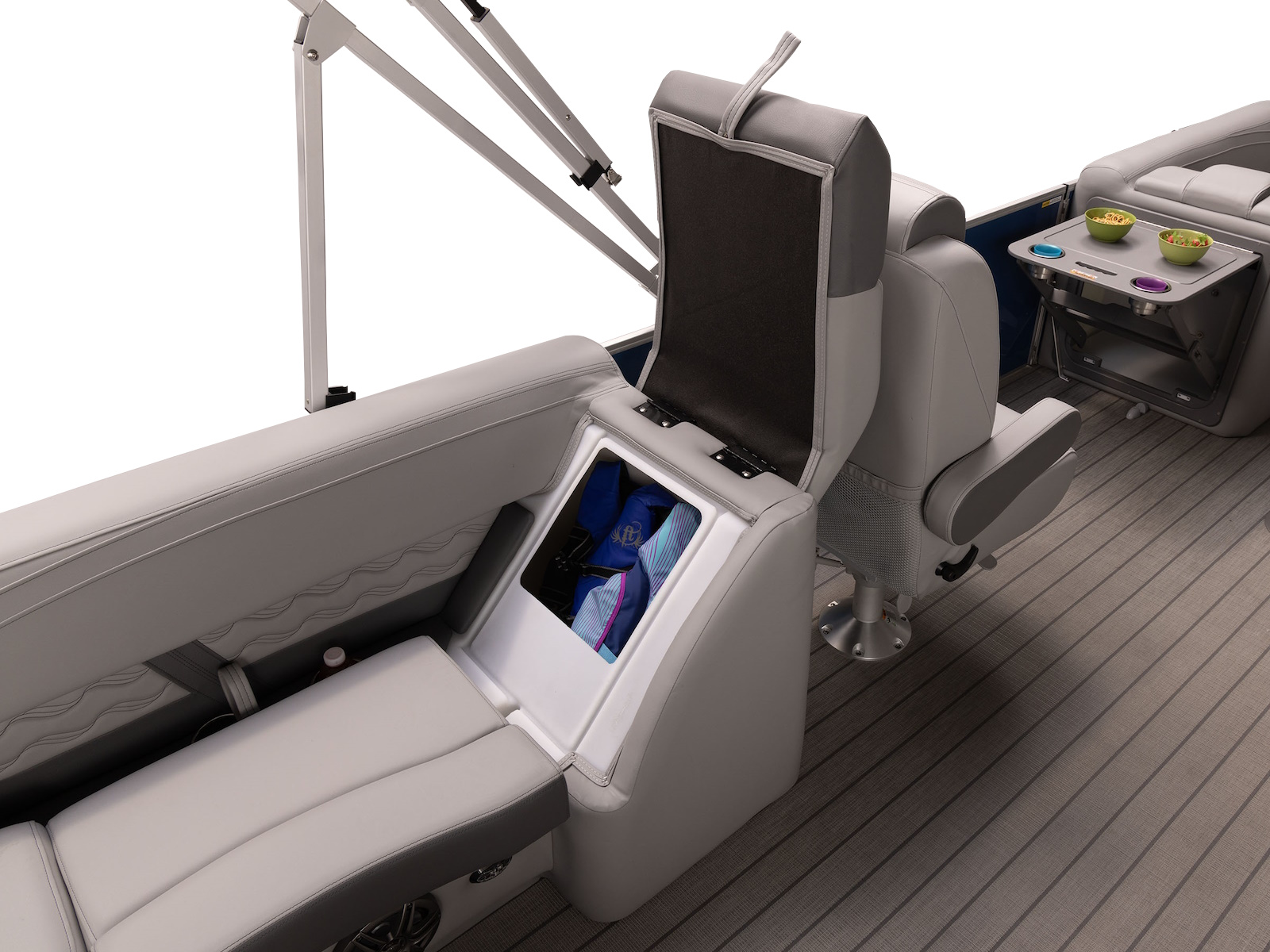 - Built in cooler under starboard bow corner cushion