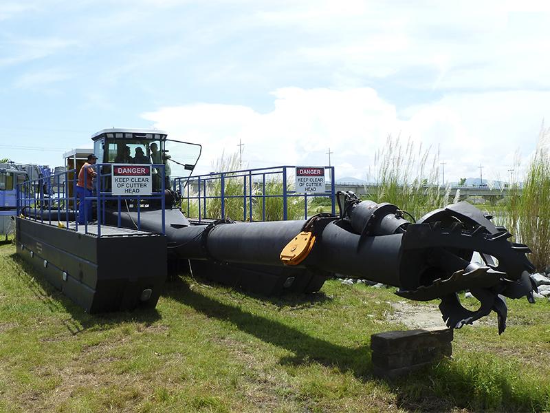This dredge comes equipped with an 8 inch discharge pump and maximum dredging depth up to 27 feet. Optional cutter heads and cutting edges are available.