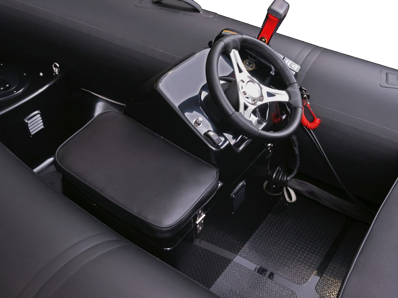 - Deep V rigid hull Three towing bow rings
