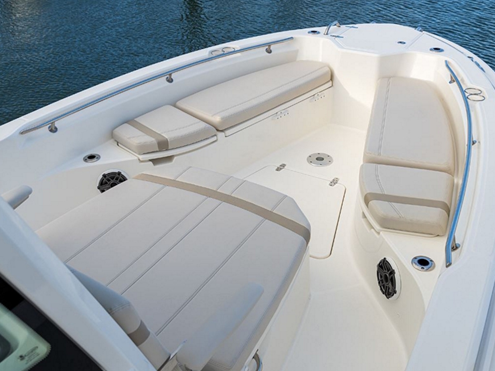 - Drink holders stainless steel, forward (4), lounge (2), console (3), aft seats (2)