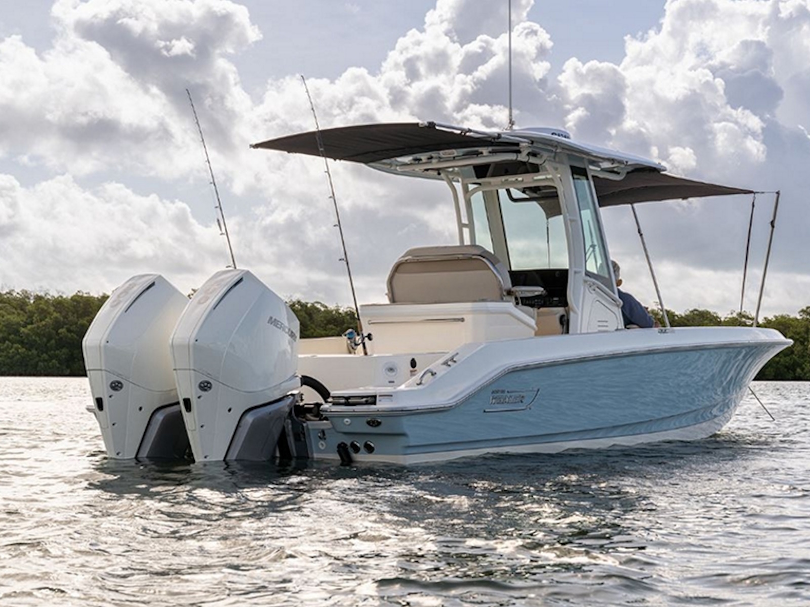 - Ample rod storage, a standard transom livewell, and pump-out forward fishbox provide outstanding fishability.