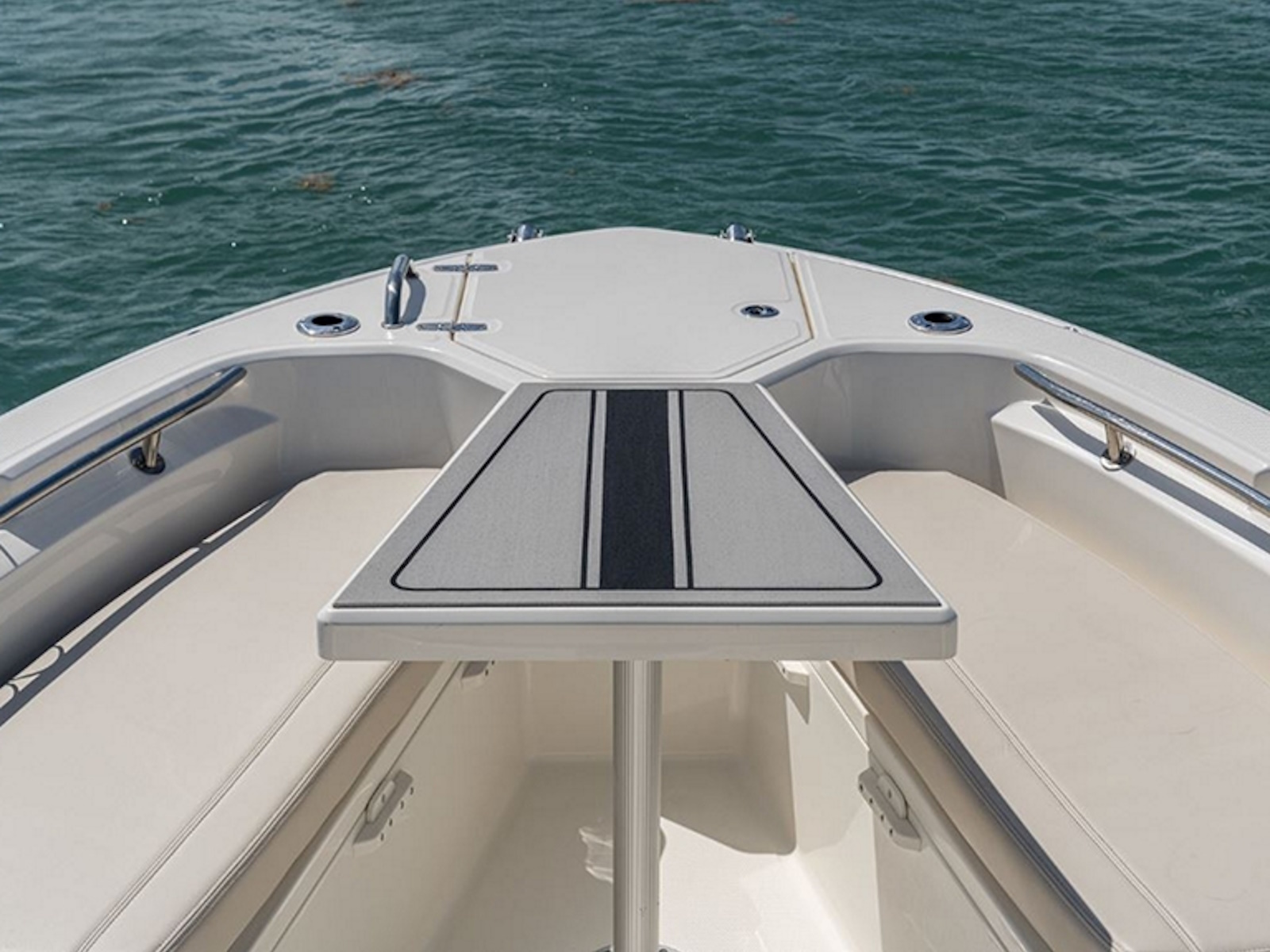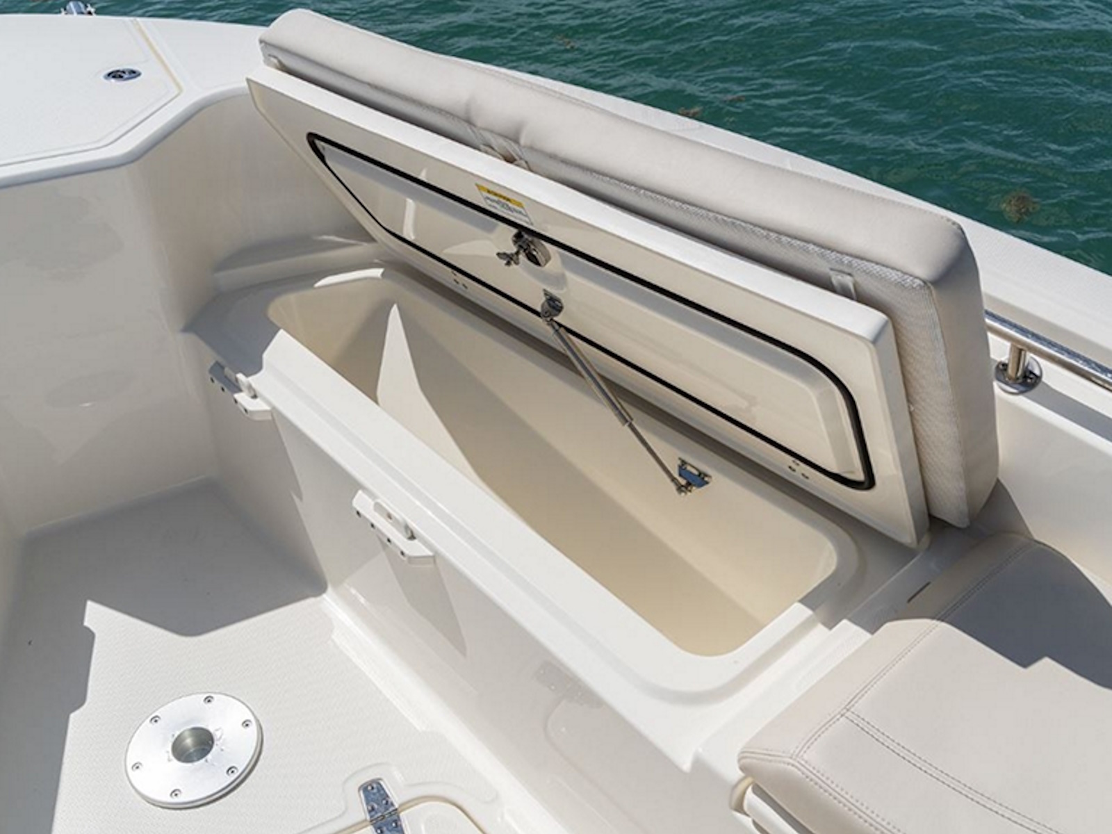 - Insulated bow storage lockers, P&S, with overboard drains and stainless-steel gas shocks