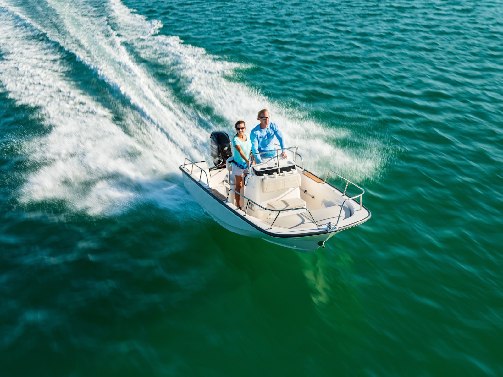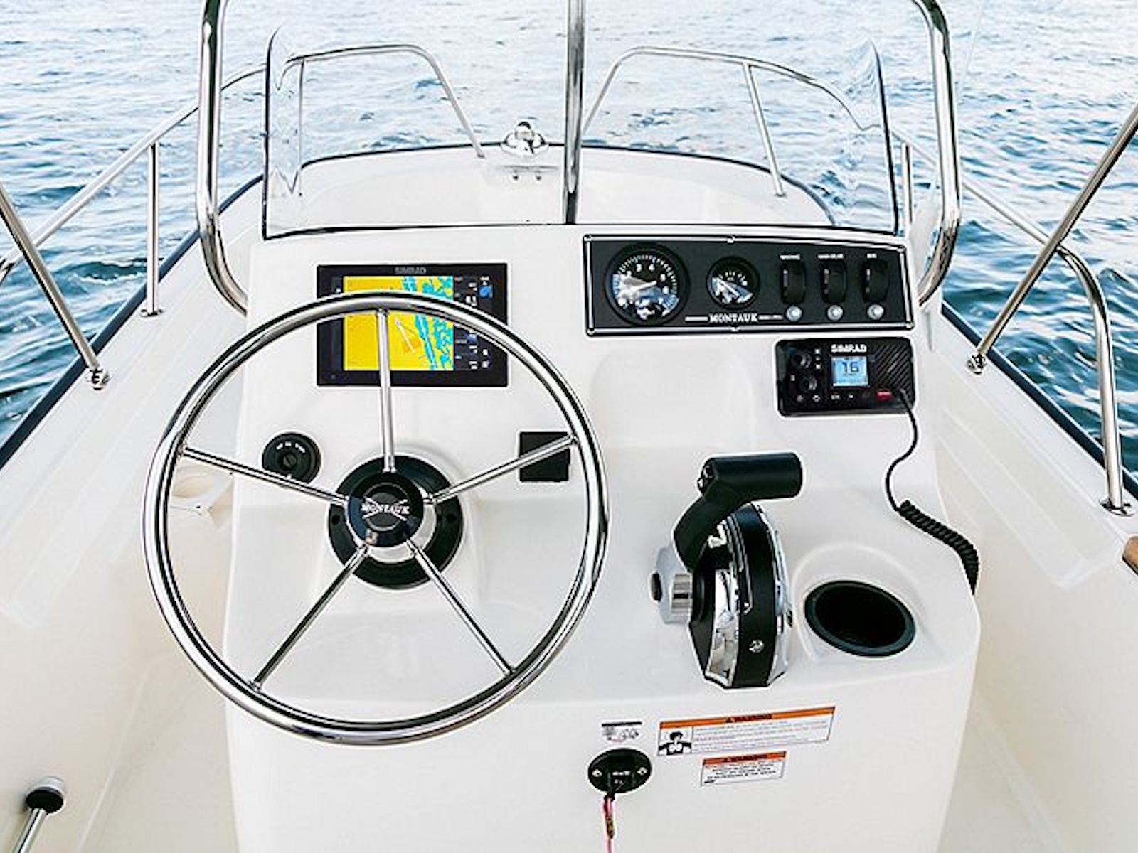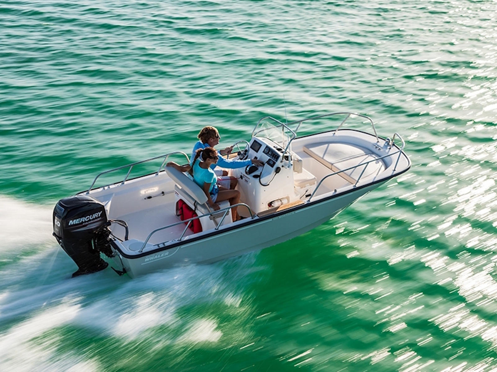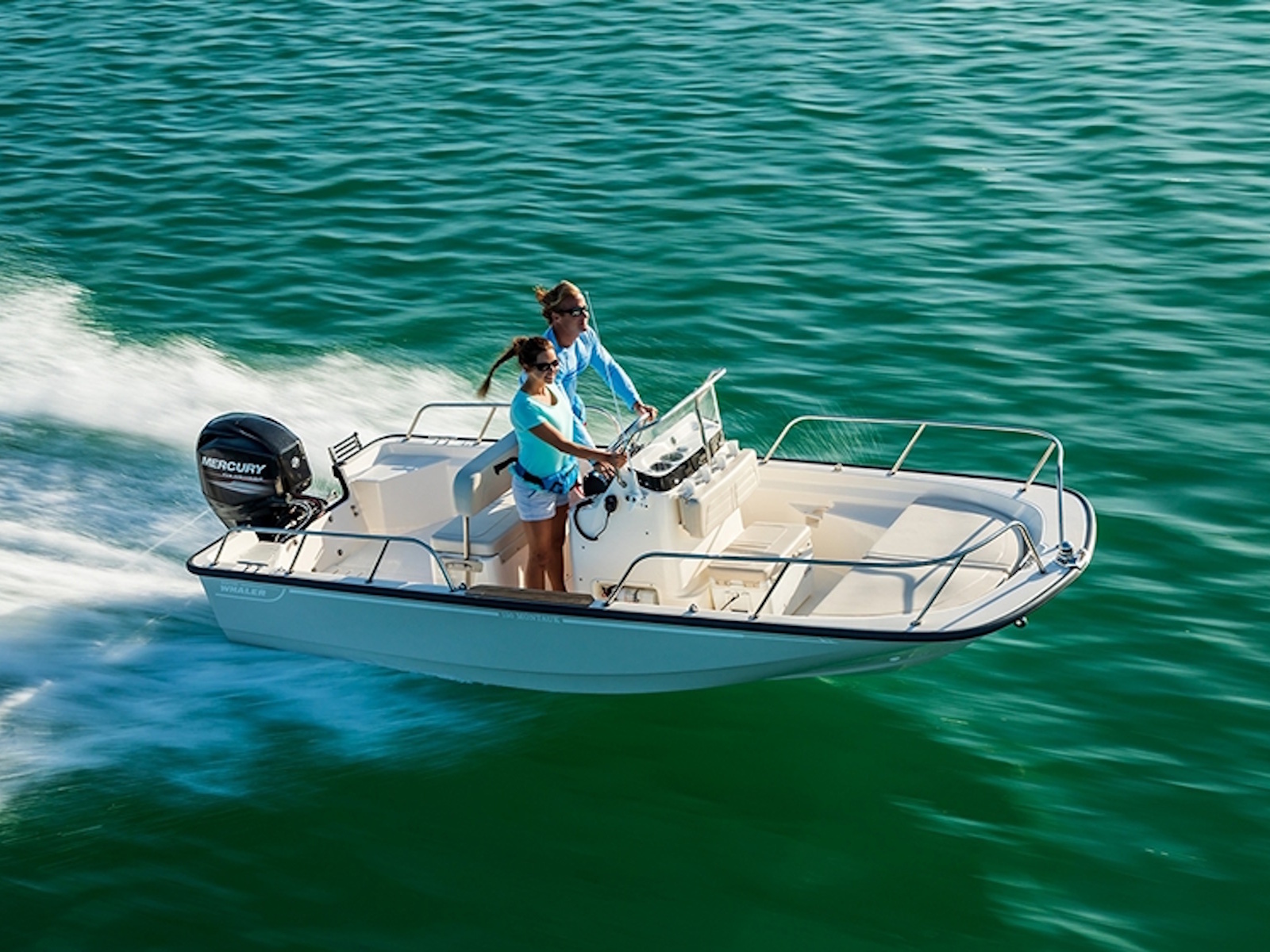 The most compact member of the proven Montauk family is a durable, stylish, and versatile 15-foot center console boat that can easily take you from the canal to the bay to the beach. Traditional lines and Boston Whaler’s legendary unsinkable hull combine for a smooth, soft ride with up to 60 horses moving it briskly through the water. The roomy layout features a fiberglass leaning post, and an optional fishing package makes it a capable inshore angler. The Montauk 150 is truly a small wonder—as easy to operate as it is to own.