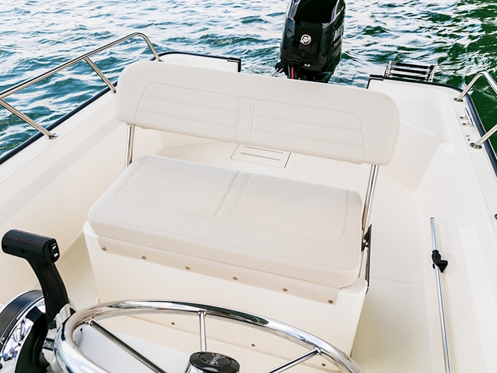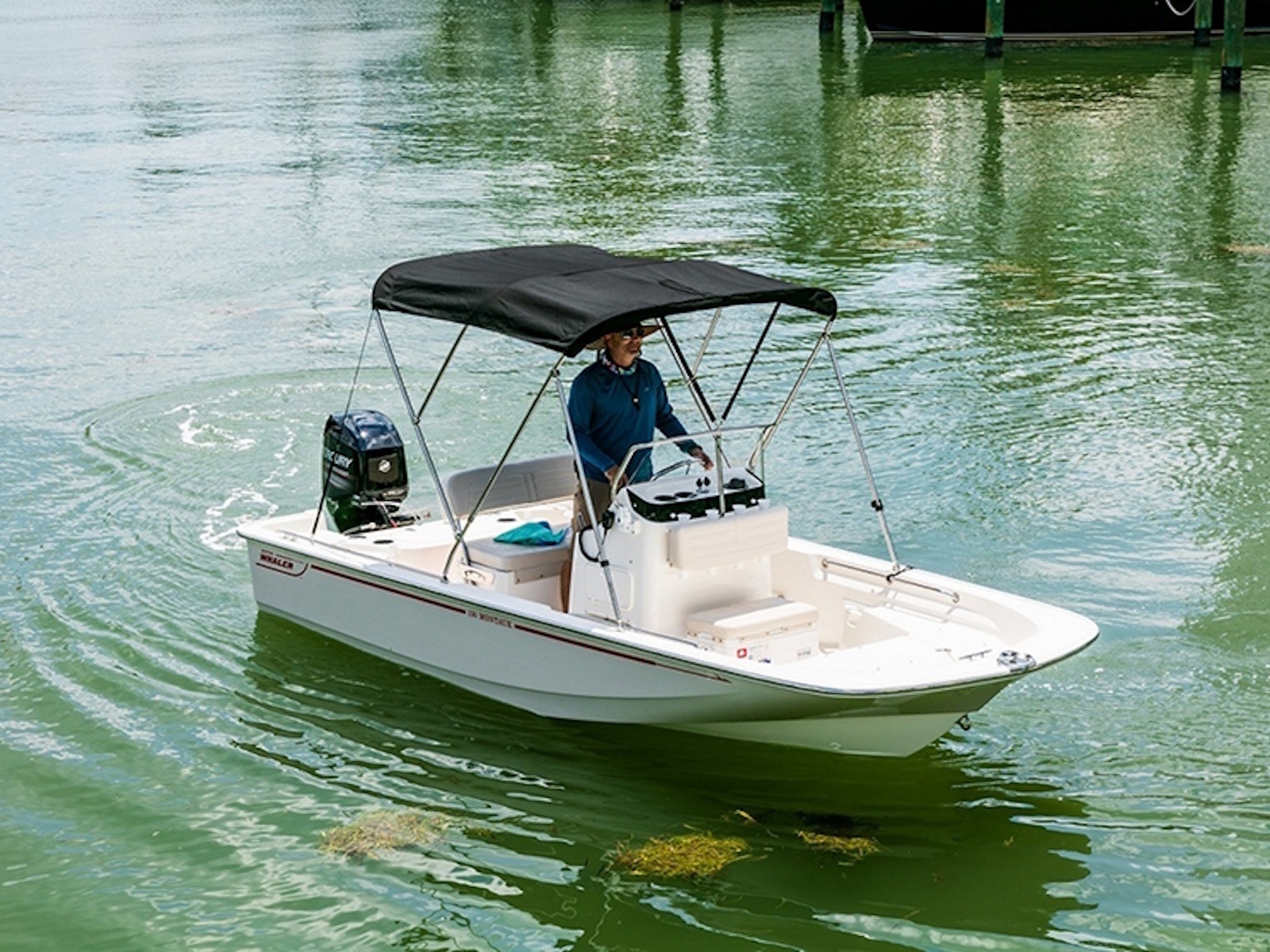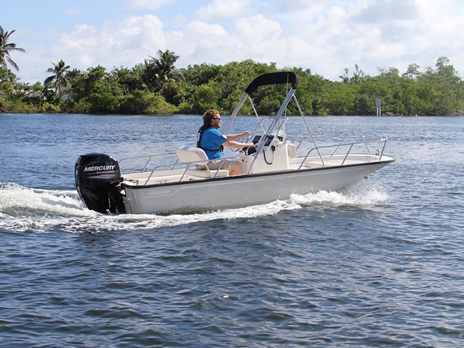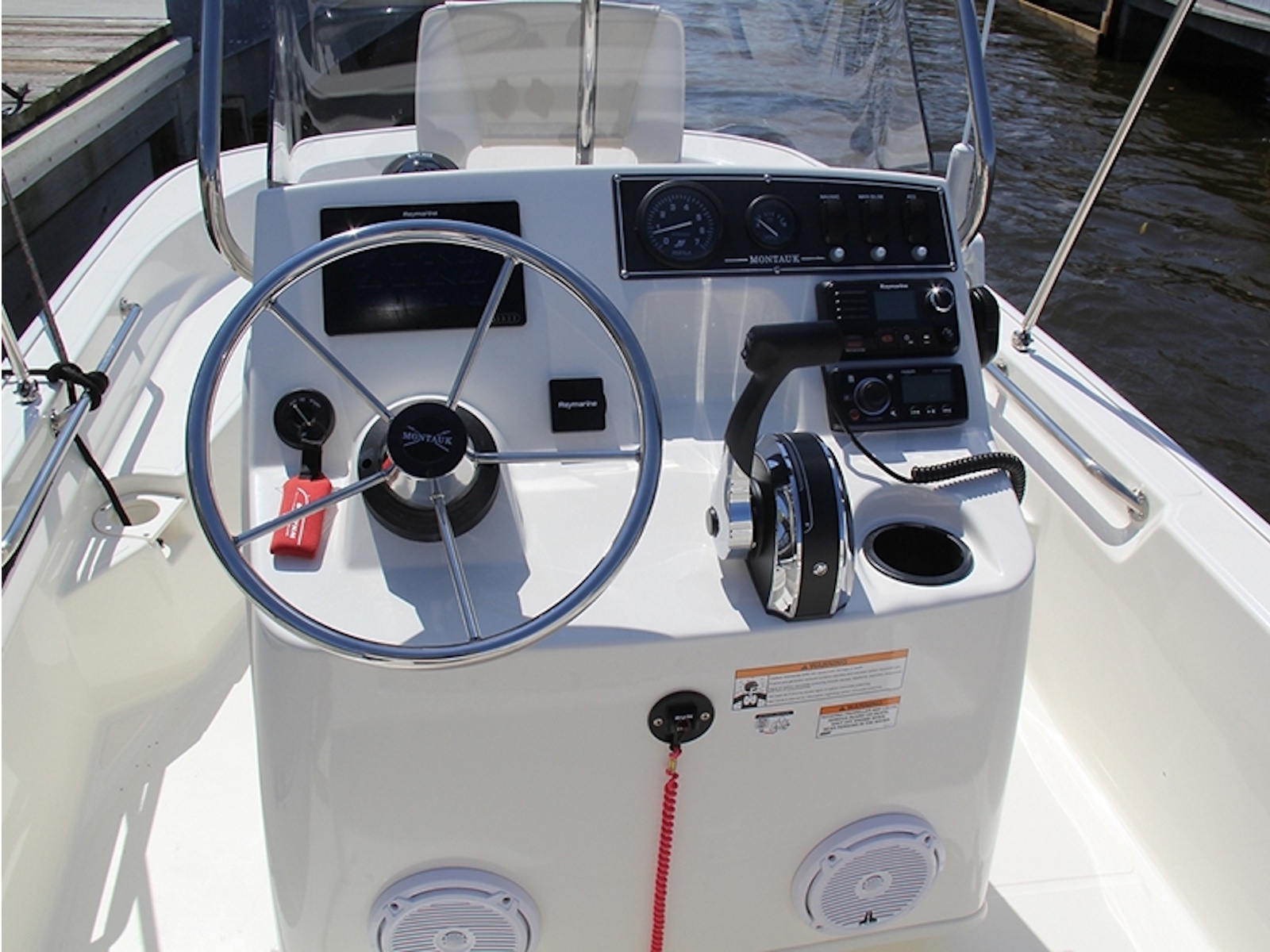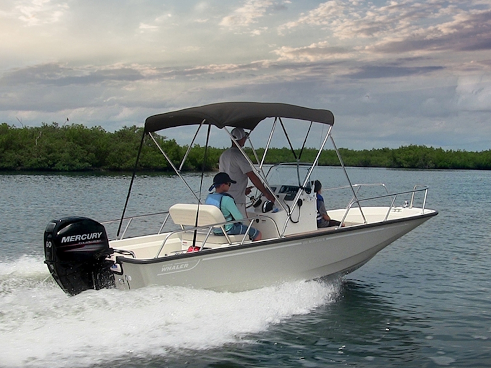 The most compact member of the proven Montauk family is a durable, stylish, and versatile 15-foot center console boat that can easily take you from the canal to the bay to the beach. Traditional lines and Boston Whaler’s legendary unsinkable hull combine for a smooth, soft ride with up to 60 horses moving it briskly through the water. The roomy layout features a fiberglass leaning post, and an optional fishing package makes it a capable inshore angler. The Montauk 150 is truly a small wonder—as easy to operate as it is to own.